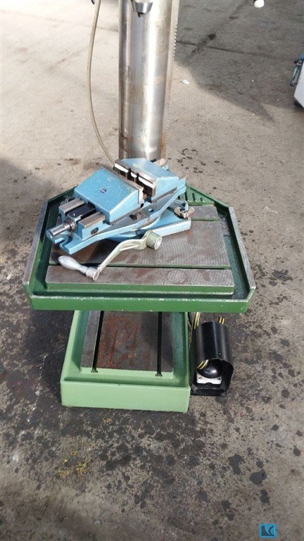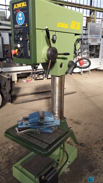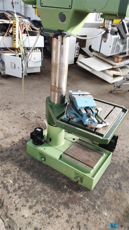 Alzmetall AB4SJ Tool holder MK4 automatic feed with 3 feed speeds 2 shoot stages and infinitely variable speed control right left barrel, thread cutting device Cooling agent device in the foot Round table with holes without rev counter Machine hood modern made of plastic with cracks and loechers Speed: 80-710 rpm Table diameter: 450 mm Max distance from spindle to foot: 1200 mm Extension to center spindle: 170 mm Machine hoe approx. 200 cm Bt323s8 SPECIAL PRICE due to visually poor condition according to photos, technically usable condition, the drill is not locked at the shaft drill spindle tool holder in the rotational motion (see photos). If the drill is not firmly in the drill spindle, it rotates through. Special price