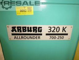 Injection moulding machine, Fabr. Arburg Allrounder, Type 320K 700-250, Series No. 183071, Y.O.M. 11/2000, machine weight: 2.270kg, clamping force: 700kN, operating voltage: 400V 50Hz, heating: 6.1kW, pump motor: 1x15,00kW, total connection: 21.1kW