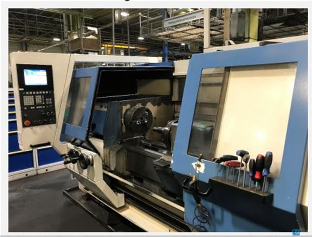 Turning diameter over bed/face slide: 420mm/280mm, turning length: 1000mm, spindle bore: 78mm, max. speed: 3550rpm, drive power: 35kW, tool positions: 12 (with driven tools), tool holder: VDI50, rapid traverse: 10m/min. Machine dimensions X/Y/Z: approx. 4100mm/2300mm/2200mm, weight: approx. 10000kg, control: Siemens 840T with C-axis. After a buffer battery replacement, the software of the machine was deleted, whereby some machine parameters were deleted without documentation and automatic operation is currently impossible. Expected to be available from Q1, 2025.