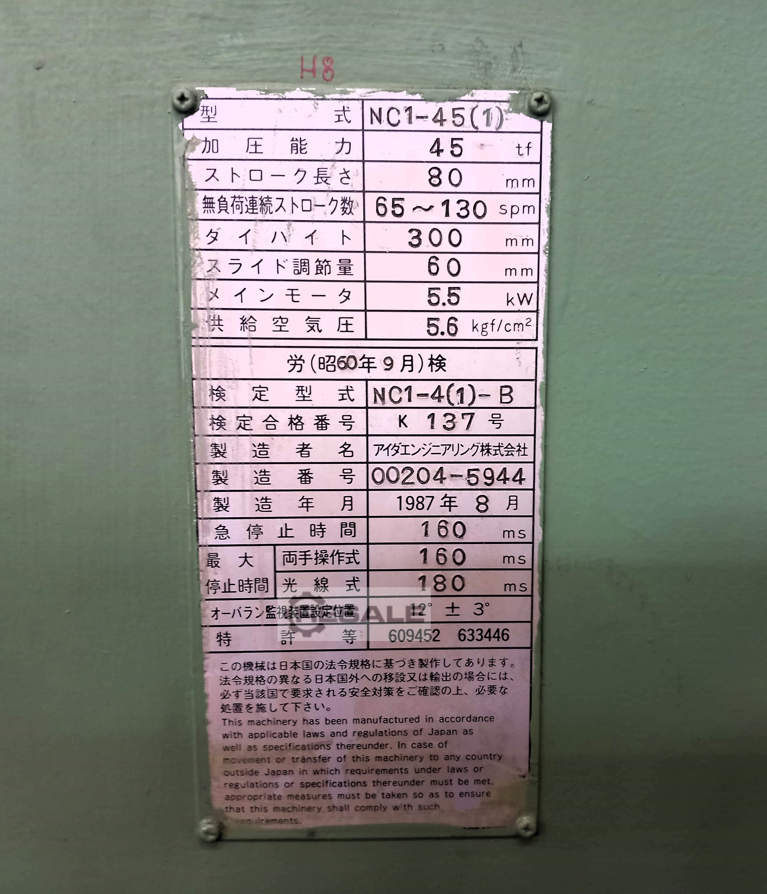 Price: sold AIDA NC1-45 45t + similar AIDA-Model