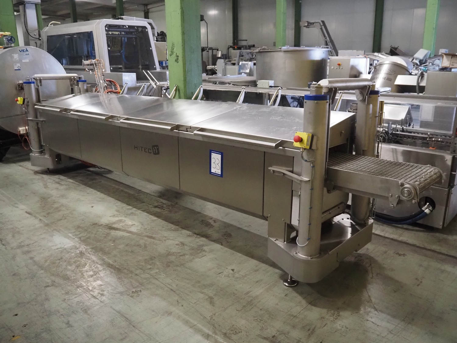 Multivac traysealer, type: T700, serial number: 169932, year of construction: 2013, 400/230 V, 3 Ph, 50 Hz, 18/32 A, 4.2 kW, film width: 280 mm, plastic mesh infeed belt, belt width: 200 mm, dye: (4x) 230 mm x 160 mm, plastic outfeed belt, belt width: 250 mm, total dimensions: 4850 mm x 850 mm x 2050 mm, Eurovacuum vacuum pump, type: EV-O175F, capacity: 175 m³ per hour, dimensions: 900 mm x 750 mm x 400 mm, s/s trolley for dye sets, dimensions: 1500 mm x 750 mm x 1350 mm, s/s frame with additional dye set, dimensions dye: (4x) 230 mm x 160 mm, dimensions frame: 2100 mm x 500 mm x 1250 mm, pallet with parts, 14 pallets with plastic trays, dimensions each tray: 230 mm x 140 mm x 35 mm.