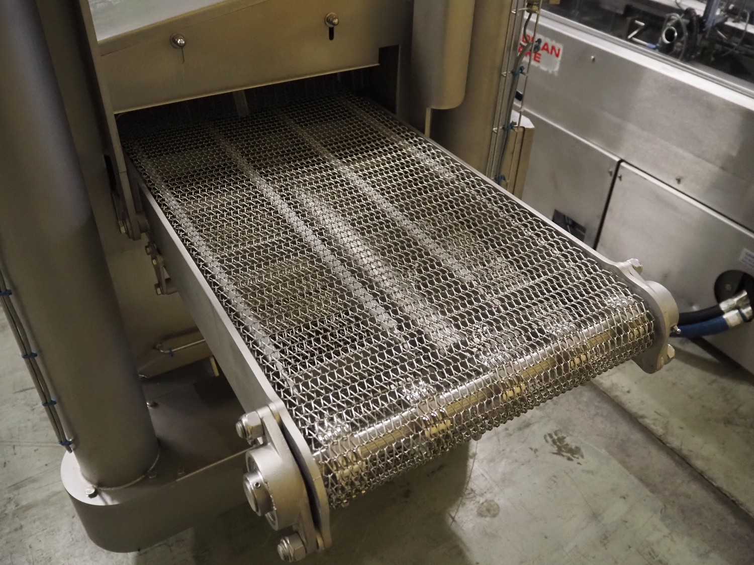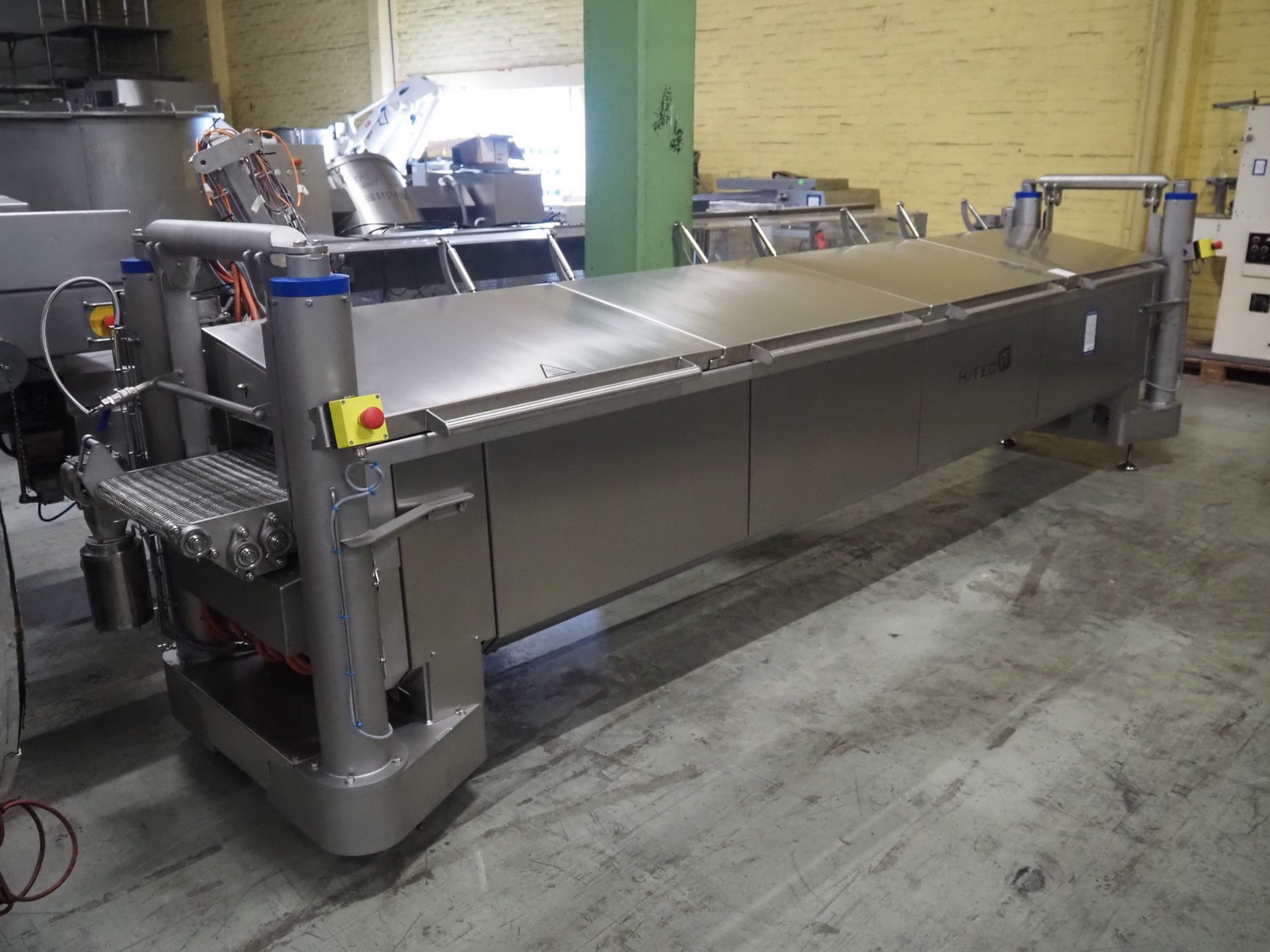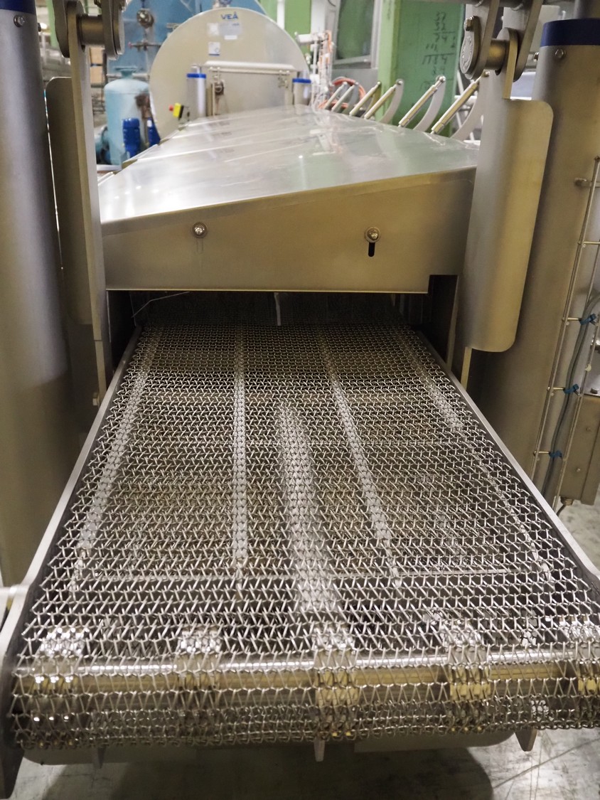 Hitec BV pasteurizer, type: Steamer 450/4000E, serial number: 20212536, year of construction: 2021, 74 kW, s/s mesh belt, belt width: 440 mm, with switch cabinet, dimensions: 1400 mm x 800 mm x 400 mm, total dimensions: 5300 mm x 1100 mm x 1400 mm.