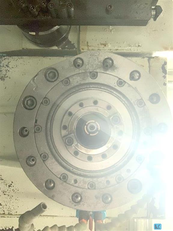 x-travel:800 mmy-travel:950 mmz-travel:1020 mmcontrol:Sinumerik 840D sl MDynamics Operate turning speeds:10.000 1/minSpindle power:26/20 kWmax. torque on the spindle:340/262 Nmtool taper:HSK-A 100 tool change unit:120 (2x60) Pos.Pallet changer 2x:630 x 630 mmtable load capacity:800 kgweight of the machine ca.:20 tdimensions of the machine ca.:3,3 x 6,15 x 3,2 m6-axis simultaneous horizontal machining center with controlled swivel-rotary table (A/B-axis), Swivel table can swing overhead (180°), that means the part is hanging down overhead and chips don?t accumulate on pallet, they can fall free into the chip conveyorCNC controlled U-axis enables radial movement of tool for variable spindling diamenter.twin pallet changer 630 x 630 mm6 hydraulic couplings for pallet fixture clamping with rotary joint in A and B-axisspecial hydraulic pump for fixturecoolant through spindle (10-80bar), one ...