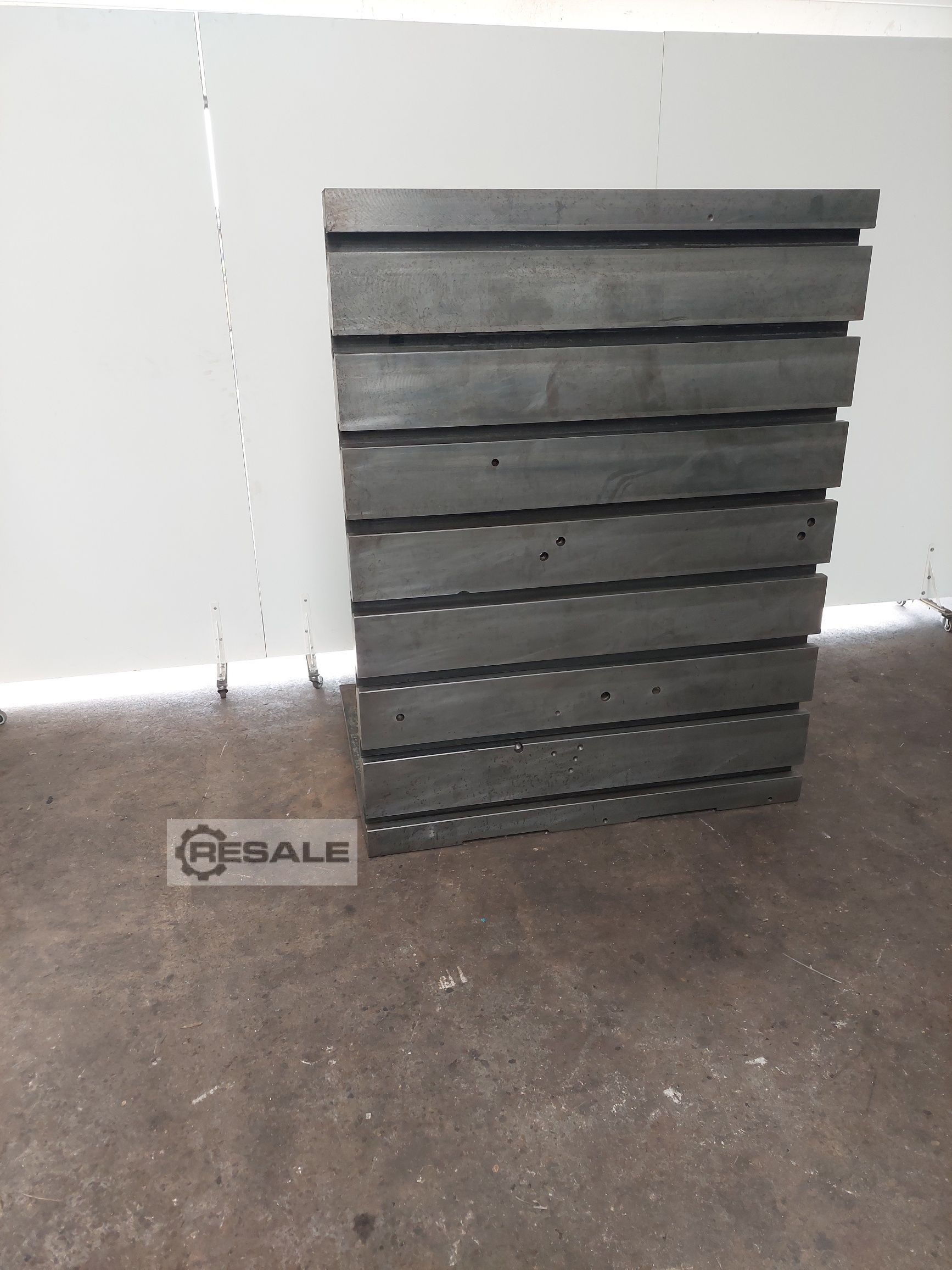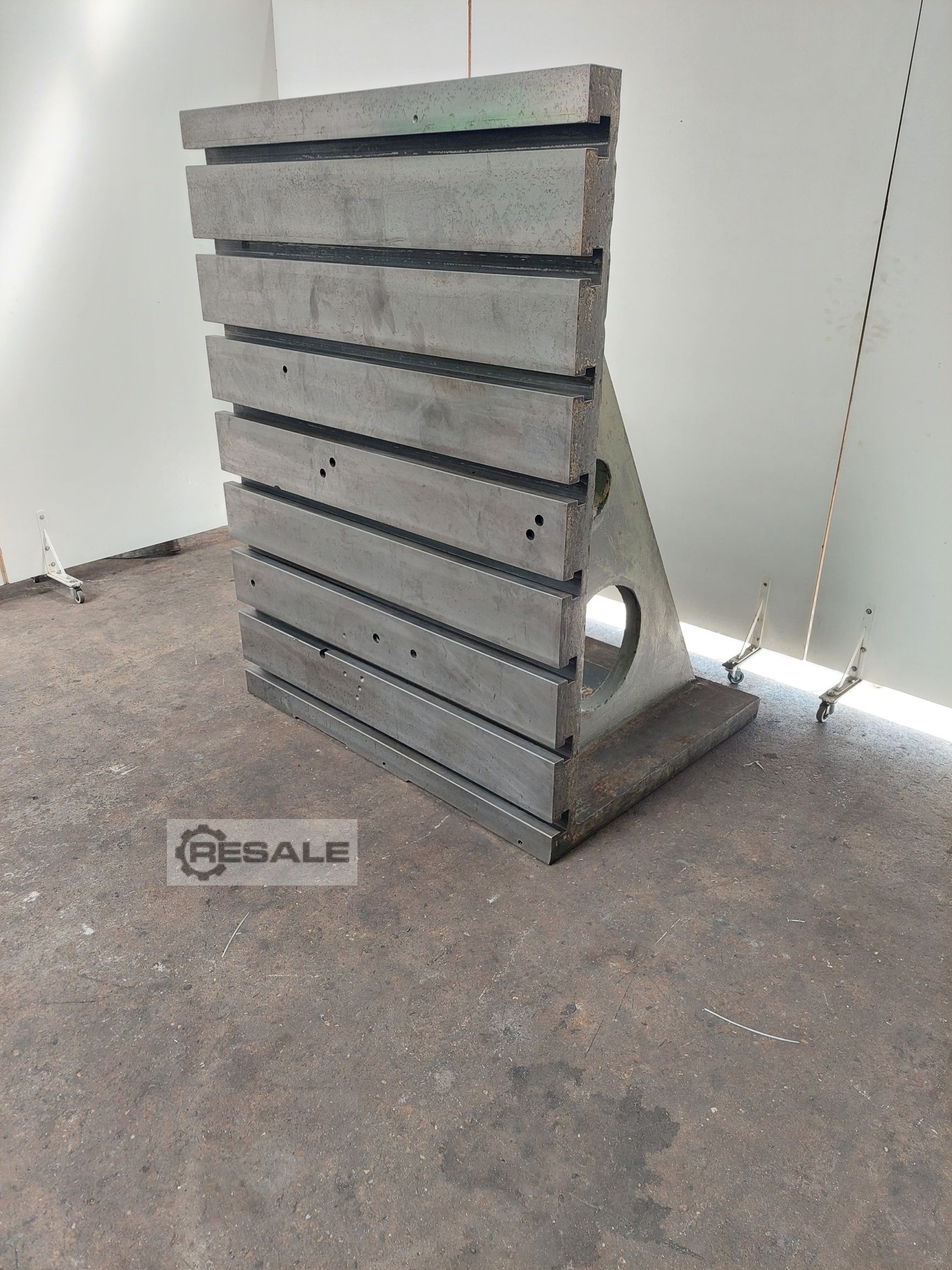 Offer 25351 Technical data: - Width approx. 1250 mm - Height approx. 1600 mm - Depth approx. 1000 mm - Plate thickness T – groove side approx. 90 mm - 8 T-slots L 1250 mm - Center distance of the T-slots 200 mm each - Distance from the outside 100 mm - T – groove width approx. 35 / 60 mm - T – groove depth approx. 28 / 32 mm - Weight approx. 1400 kg