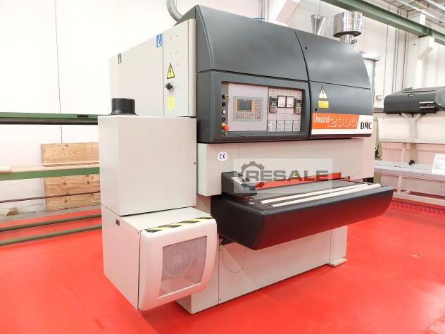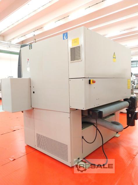 Automatic wide belt sander with 2 longitudinal units and 1 transverse