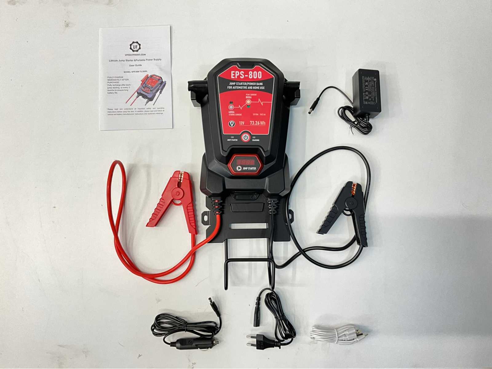 Start booster including wall mounting. Input: 21V/1A, 800A Peak current 499A Staring current Unused in box. Auction-ID: A1-40237-105