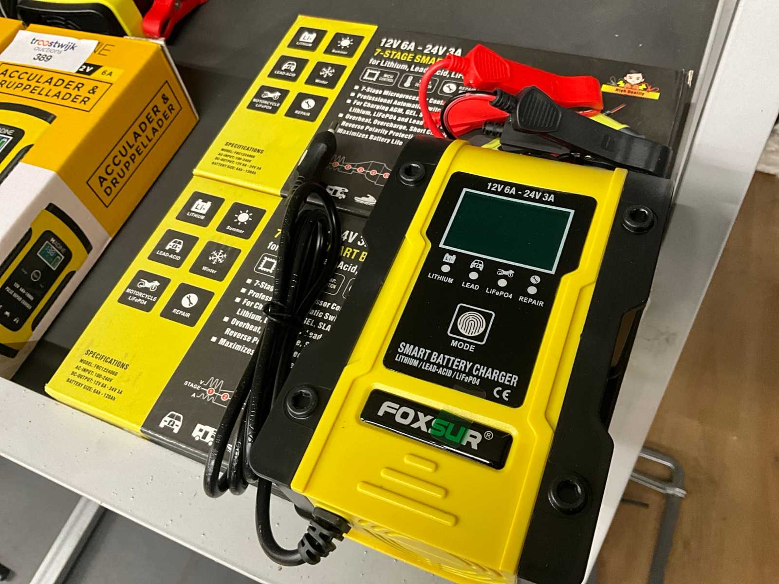 Fast charge charger Voltage 230 V, max charging power 1,200 W, output 12-24V, maximum start power 8 kW, never used Overall dimensions: 700 x 400 x 400 mm Weight: 15 kg Auction-ID: A7-44803-104