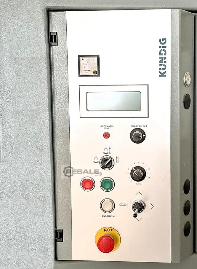Kündig Topiq-1100 Swiss quality product CONSTANT TABLE MACHINE / automatic Headhead delivery Wide-belt calibration fine grinding machine Combination unit contact roller and sanding pad unit with electronically controlled segment sanding shoe Belt drive motor power approx. 11 kW Contact roller ...