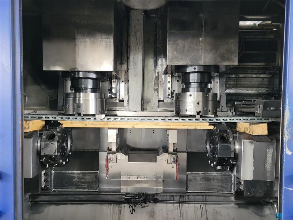 swing diameter:260 mmcontrol:840 D SIEMENSturning speeds:3.500 1/minspindle drive:36 / 28 kWchucking diameter:260 mmtravel -x axis:900 mmtravel -z axis:400 mmturret head:12 Pos.tool holder:VDI 40 rapid power traverse in X-and Z direction:100 / 30 m/mindimensions of the machine ca.:5,3 x 2,4 x 3,31 mCNC vertical lathe with 2 spindles,2x RÖHM power chucks dia. 315mm,