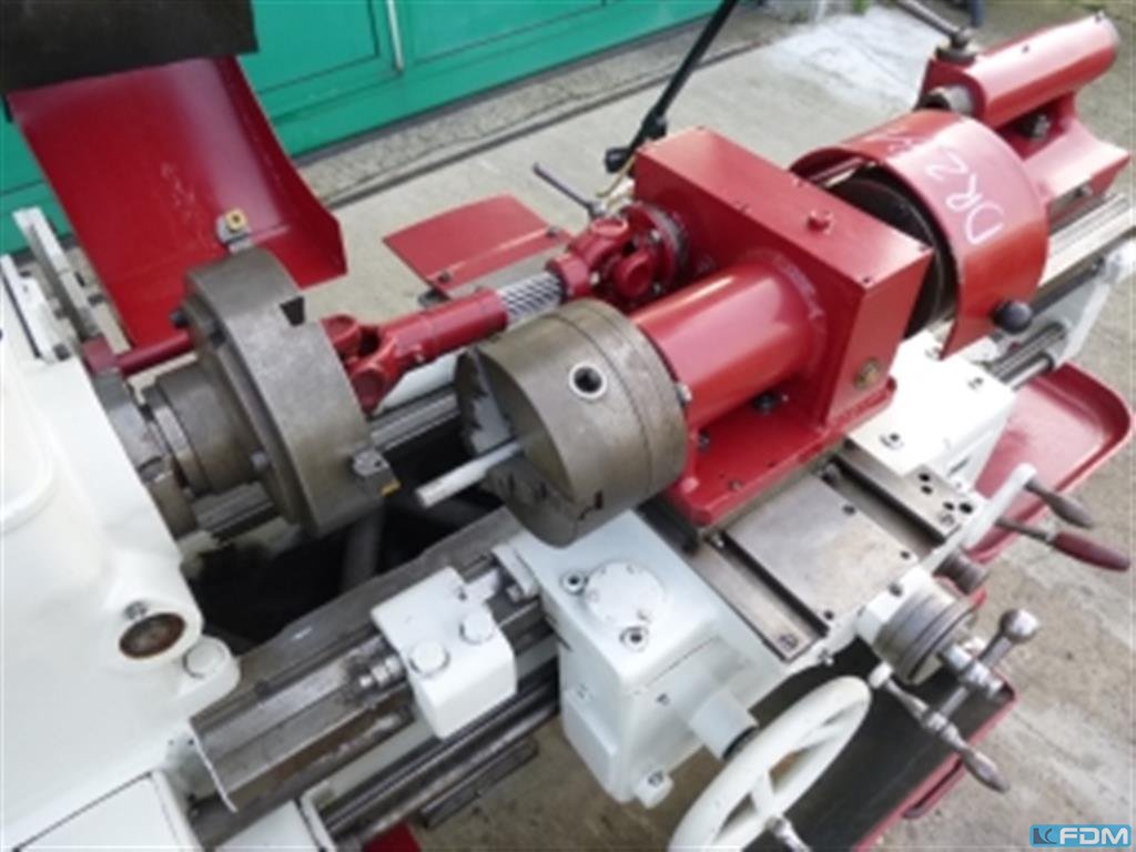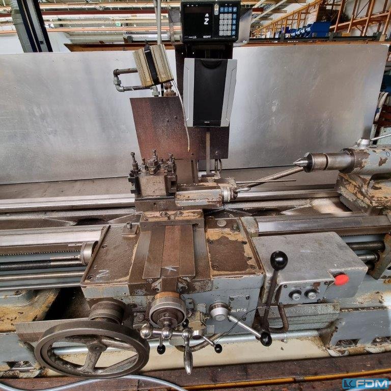 turning diameter over bed:570 mmturning diameter over slide rest:365 mmturning length:2000 mmfeed per revolution:0,06 - 58 / 0,03 - 28 mmspindle turning speed range:11,2 - 2240 U/minspindle bore:62 mmspindle head:8 nach DIN 55022 total power requirement:15 kWweight of the machine ca.:4,8 tdimensions of the machine ca.:4,5 x 1,5 x 1,4 mwith digital readout HEIDENHAINrapid feed, MULTIFIX toolholder system fixed steady dia. 160 mm 3 jaw chuck RÖHM TR 250 coolant attachmentdiverse toolholders, diverse jaws