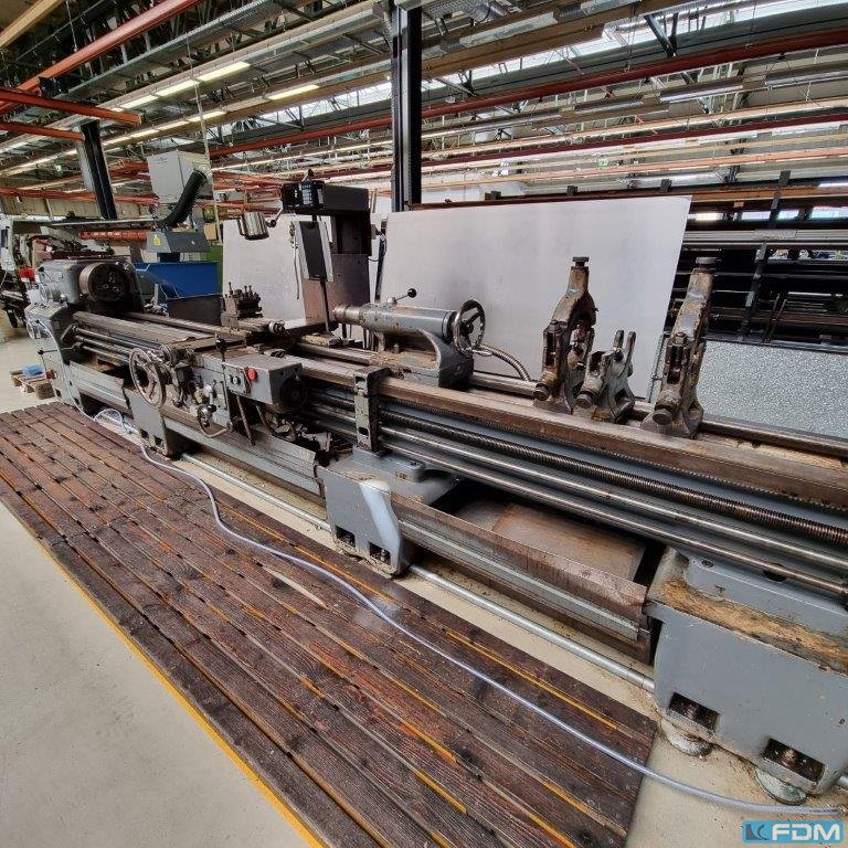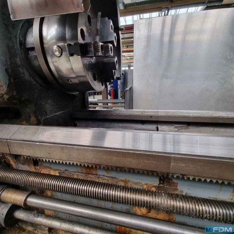turning diameter over bed:1450 mmturning diameter over slide rest:1000 mmturning length:8000 mmspindle bore:160 mmturning speed range:2,8 - 560 U/minbed width:850 mmfaceplate diameter max.:1400 mmturning diameter in the gap:1800 mmlength of gap:600 mmdimensions of the machine ca.:12 x 2 x 2,5 mwith Digital Readout2 fixed steadies dia 1070 mmchip conveyor