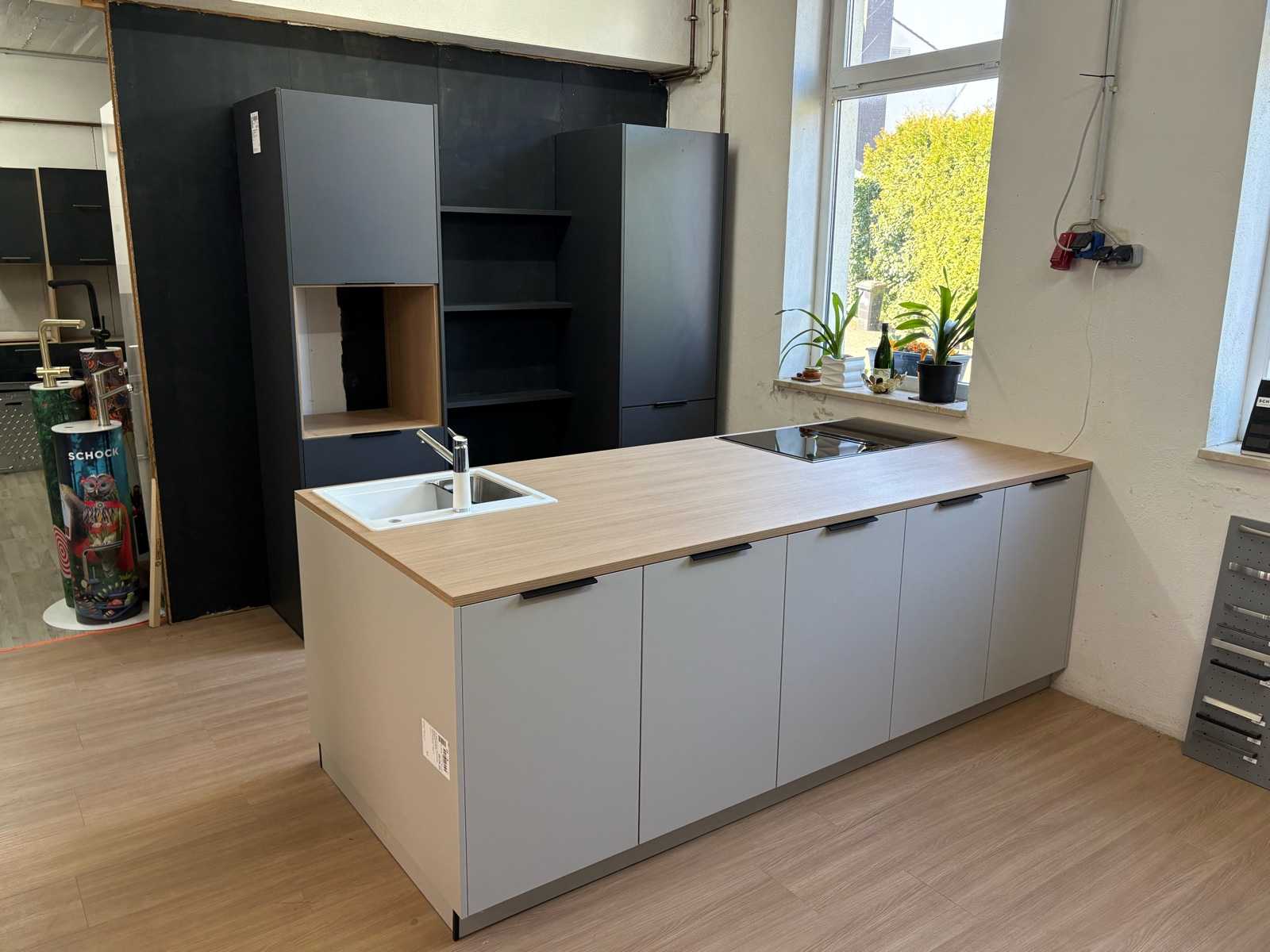 Exhibition model kitchen in modern design with slight signs of wear. These are different kitchens and the manufacturer and design can vary. The kitchens come from an exhibition and have been used accordingly, so slight visual defects such as small scratches, signs of use or dirt are possible. Some electrical appliances are included (e.g. oven, hob, extractor hood, etc.), this varies depending on the kitchen. The exact scope of delivery can be found in the respective pictures. All relevant information such as dimensions, manufacturer and equipment can be seen in the photos. Measurements and details may vary depending on the kitchen. If you have specific questions or are missing information, please contact us directly: a.glas@tbauctions.com No dishwasher, no oven With refrigerator, with induction cooker with flush tap Sold without guarantee or warranty. Auction-ID: 04J-682-1