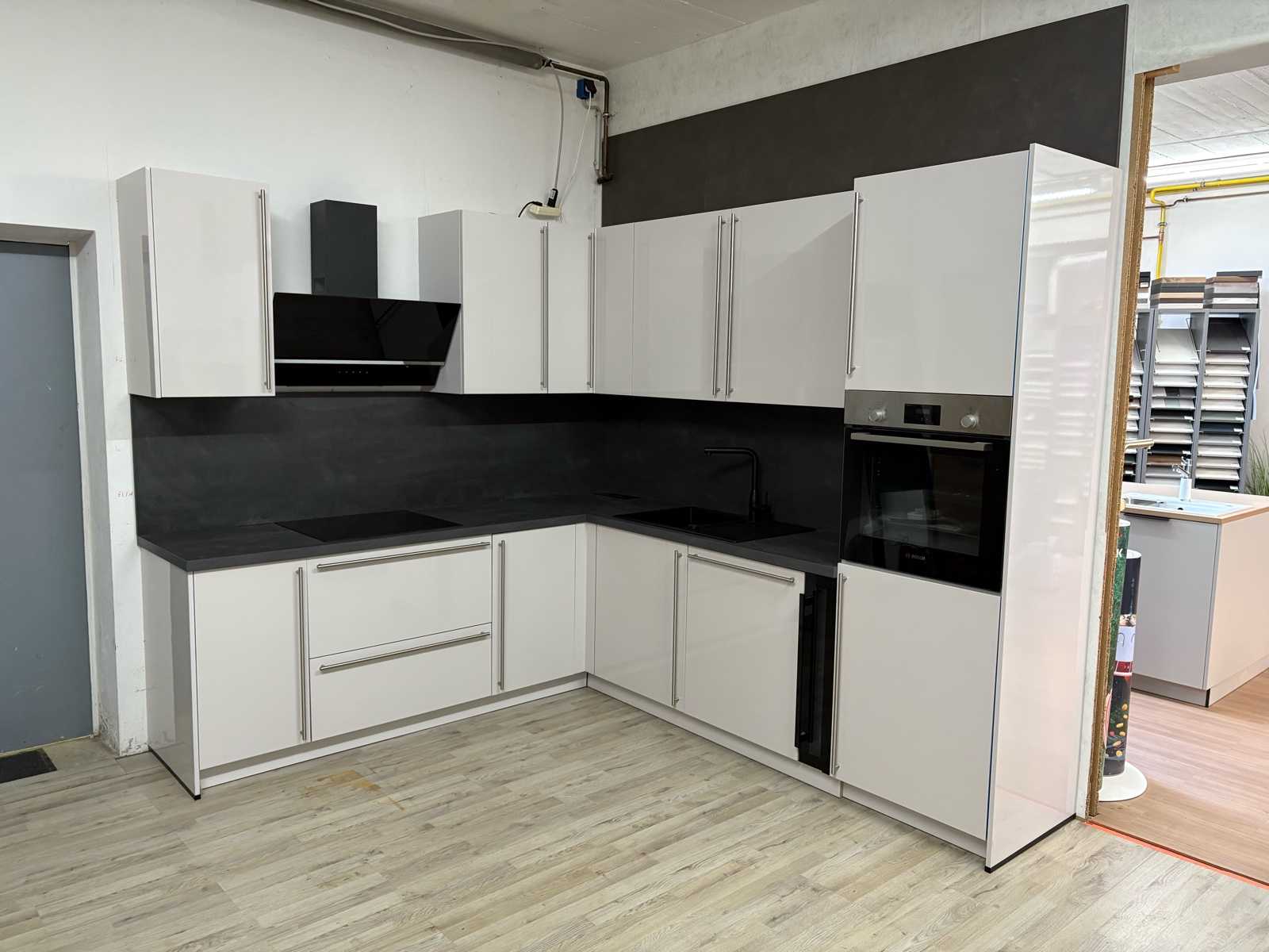 Exhibition model kitchen in modern design with slight signs of wear. These are different kitchens and the manufacturer and design can vary. The kitchens come from an exhibition and have been used accordingly, so slight visual defects such as small scratches, signs of use or dirt are possible. Some electrical appliances are included (e.g. oven, hob, extractor hood, etc.), this varies depending on the kitchen. The exact scope of delivery can be found in the respective pictures. All relevant information such as dimensions, manufacturer and equipment can be seen in the photos. Measurements and details may vary depending on the kitchen. If you have specific questions or are missing information, please contact us directly: a.glas@tbauctions.com Without electronic devices. Sold without guarantee or warranty. Auction-ID: 04J-680-1