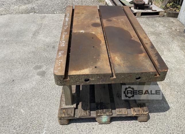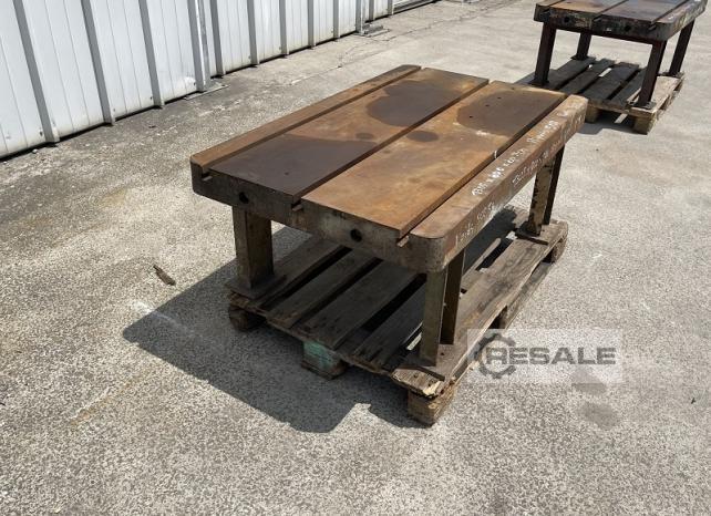 Cast iron bed Length: 3650 mm Width: 1370 mm Thickness: 150 mm 11 T-slots - dimensions 32 x 18 mm Slots spacing: 125 mm Assembly in 2 parts Dimensions of each part: L 1820 mm x W 1370 mm x H 150 mm Total height on base 875 mm Weight: approx 4 T