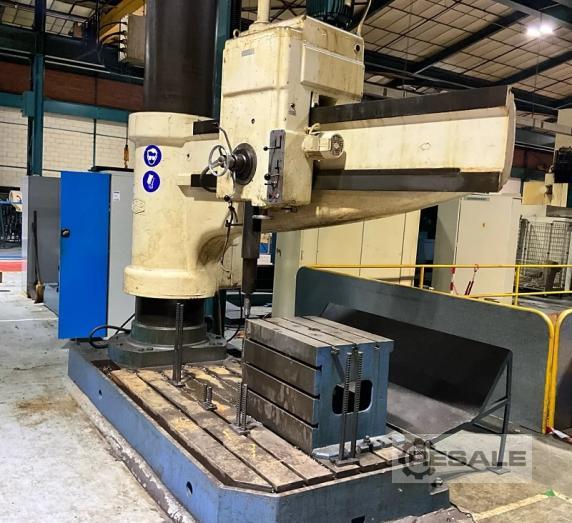 Radial Drilling GSP 49S22 Spindle: Ø 125 mm Cone: CM6 Spindle exit: 600 mm Spindle speed: from 17 to 1050 RPM Arm travel: 1800 mm Maxi height column travel: 1800 mm Column diameter: Ø 600 mm Total column height: 3000 mm Spindle speed: 11 kW Drilling/tapping function Mechanical locking of the column Hydraulic locking of the trolley Auto descent Delivered with one cube Cube dimensions: L 800 x W 560 x H 600 mm Table size: L 3300 x W 1400 x H 320 mm Voltage: 380 V Weight: 12 T