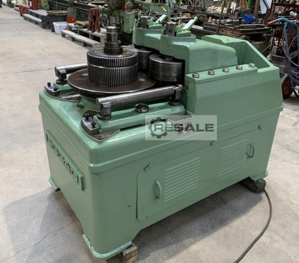 Profile Bending Machine SOCAD type CP 13.8 Outer wing angle capacity: 80x80x8 mm Flat on field capacity: 55 x 30 mm Flat on flat capacity: 75 x 20 mm T capacity: 80 x 80 mm Square capacity: 55 x 55 mm Equippeed with 1 fluted trainer roller Ø 300 x Ht 150 mm + 2 rollers Ø 260 x thickness 110 mm Voltage: 380 V Motor power: 8 CV Dimensions (L x W x H): 1800 x 1200 x 1400 mm Weight: 2,5 T