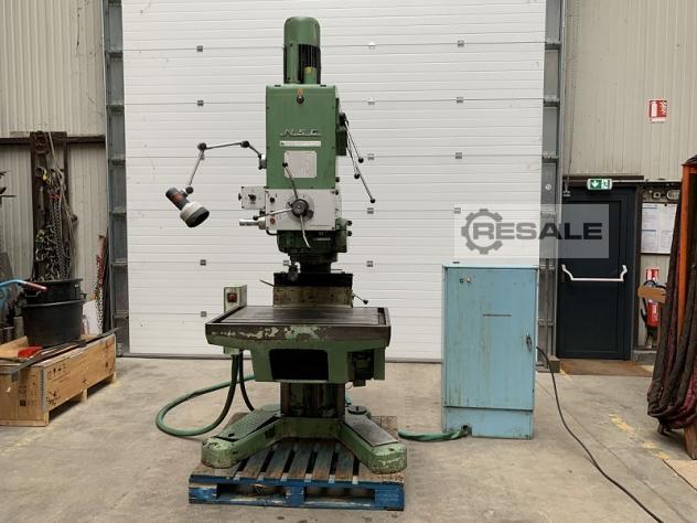 Radial Drilling Machine OTTO MULLER Spindle: CM4 Spindle speed: from 70 to 1400 RPM Front table size: 1350 x 550 Back table size: 1000 x 400 mm Slide travel: 1000 mm Maxi distance spindle nose/front table: 600 mm Motor: 2 speeds Maxi column rise: 400 mm Auto descent Drilling/tapping function Spindle speed adjustment by belt variation Hydraulic locking Lubricant pump Voltage: 380 V Dimensions in low position: W 1500 x D 2400 x H 2300 mm Weight: approx 2 T