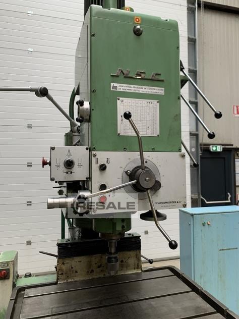 Radial Drilling Machine SCHLUMBERGER RF6 Spindle: SA40- with tools clamp Spindle exit: 300 mm Spindle speed: from 35 to 1800 RPM Table size: 1000 x 700 mm Year of construction: 1979 Column slide travel: 700 mm Maxi distance spindle nose/table: 850 mm (en high position) Mini distance spindle nose/table: 250 mm (en low position) Drilling / tapping function Auto descent Rotation at 360° on column Voltage: 380 V Width: 1300 mm Depth: 2000 mm Total high in low position: 2650 mm Total high in high position: 3000 mm Weight: env. 3 T