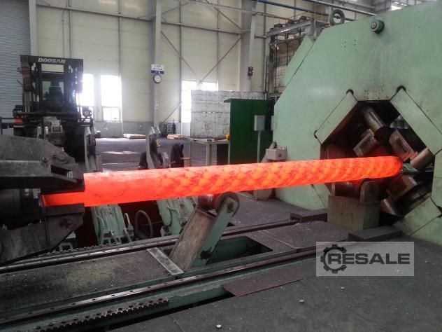 NEAGARI SHIBUYA Radial Forging Machine Model BF-350 New 2010 Specifications 1. Machine components (1) Bar-Forging Machine: 1 set (2) Manipulator: 2 set (3) Hydraulic System: 1 set (4) Electric Power & Control System: 1 set (5) Foundation: 1 set (6) Unloader: 1 set (7) Work Support: 6 set (8) Work Support (center): 2 set (9) Mandrel (IN): 1 set (10) Mandrel (OUT): 1 set (12) Die Changing Unit: 1 set 2. Work Piece 2-1. Material (1) Tool Steel (EX. DIN-X40CrMoV51AISI-H13JIS-SKD) (2) C-steel 2-2. Starting Dimension (1) Round: max. diameter 450mm (2) Square: max. flat to flat 240mm (3) Max. Length: 3500mm (4) Max. Weight: 3000kg 2-3).Forged Dimension (1) Min. Diameter: 80mm (2) Min. Square: 120mm (3) Max. Length: 8000mm (4) Max. Weight: 3000kg 3. Bar Forging Machine 3-1. Forging Ability (1) Number of rams: 4 (2) Force / ram: max. 7000kN (3) Hydrau ...