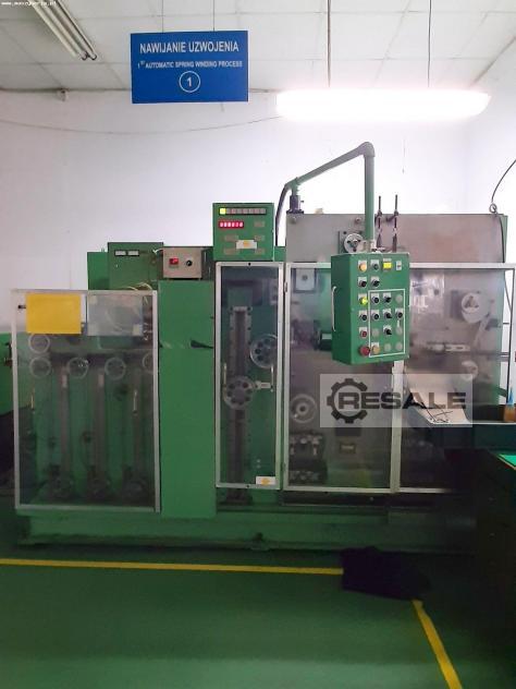 OKUNO MSC-15 spring coiling machine was manufactured in 1998 in Japan by OKUNO Machine Co. The machine designed for the efficient production of springs from wire with a maximum thickness of 0.3 mm, consists of a wire spool rack with a braking system, a heating device for annealing and a forming machine. The wire processing process begins with taking material from a spool mounted on the machine stand, which is then fed into the heating device to anneal both ends of the spool. The pre-treated material is then fed further into the forming machine, where it is shaped into a spring by automatic cutting and bending. The length of wire feed is regulated by a digital indicator located on the machine frame. Technical data of the OKUNO MSC-15 spring coiling machine - maximum wire feeding length: 10m ± 5 mm - thickness of material: 0.15 – 0.3 mm - material width: 5.0 – 15.0 mm - maxi ...