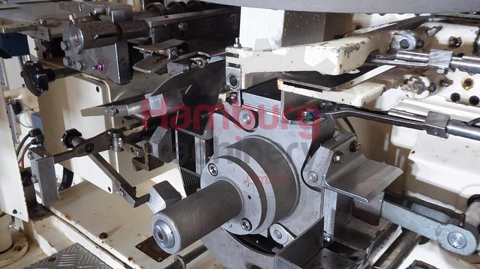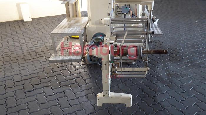 Automatic foil wrapping machine which can be used for packing products like margarine or butter into aluminium foil. The machine is in a good as condition with main control panel with Siemens S7-200 PLC and frequency converter and operation panel with Siemens TD200 Operator Interface. Previously used in a margarine factory. The machine is equiped with a rotating forming drum with 4x rectangular molding chambers. The format on the machine is 250 gram, 98 x 65 x ± 41 mm. SIG folding principle (folding flap on the side, for less foil usage). The margarine is feed with a direct connection with compensator and return line. The machine is equiped with a photocell on the paper infeed, to control the exact position of the print on the foil. The speed can be adjusted by a frequency converter between 30 - 120 packages per minute (depending on product, packaging material and surrounding conditions). Oil lubrication by oil bath for the curves and bearings inside the machine. Outfeed conveyor of ± 1,5 meter., Additional features:, Excluding:, - Oil feeding pump., Type of Machine: Margarine packaging machine, Capacity: up to 1.800 Kg/h, Capacity (Units): up to 120 packages per minute, Packaging Weight: 250 gram, Packaging Size: 98 x 65 x ± 41 mm, Packaging type: SIG folding principle (folding flap on the side, for less foil usage) , Production hours: 13.459 hour, Motor power: ± 3 kW, Weight: ± 2.000 kg, Total dimensions: ± 325 x 200 x 180 cm