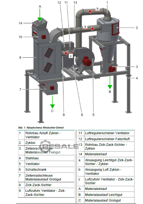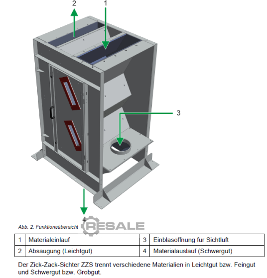 Type of machine: Air classifier / zig-zag classifier