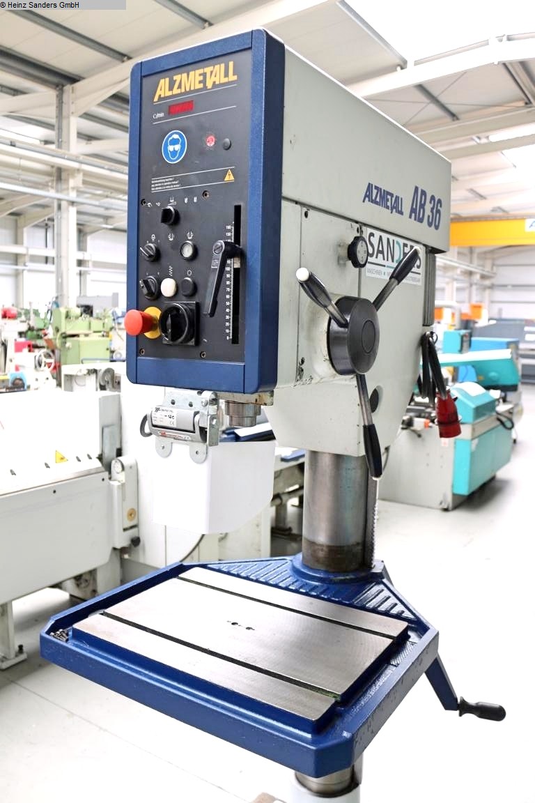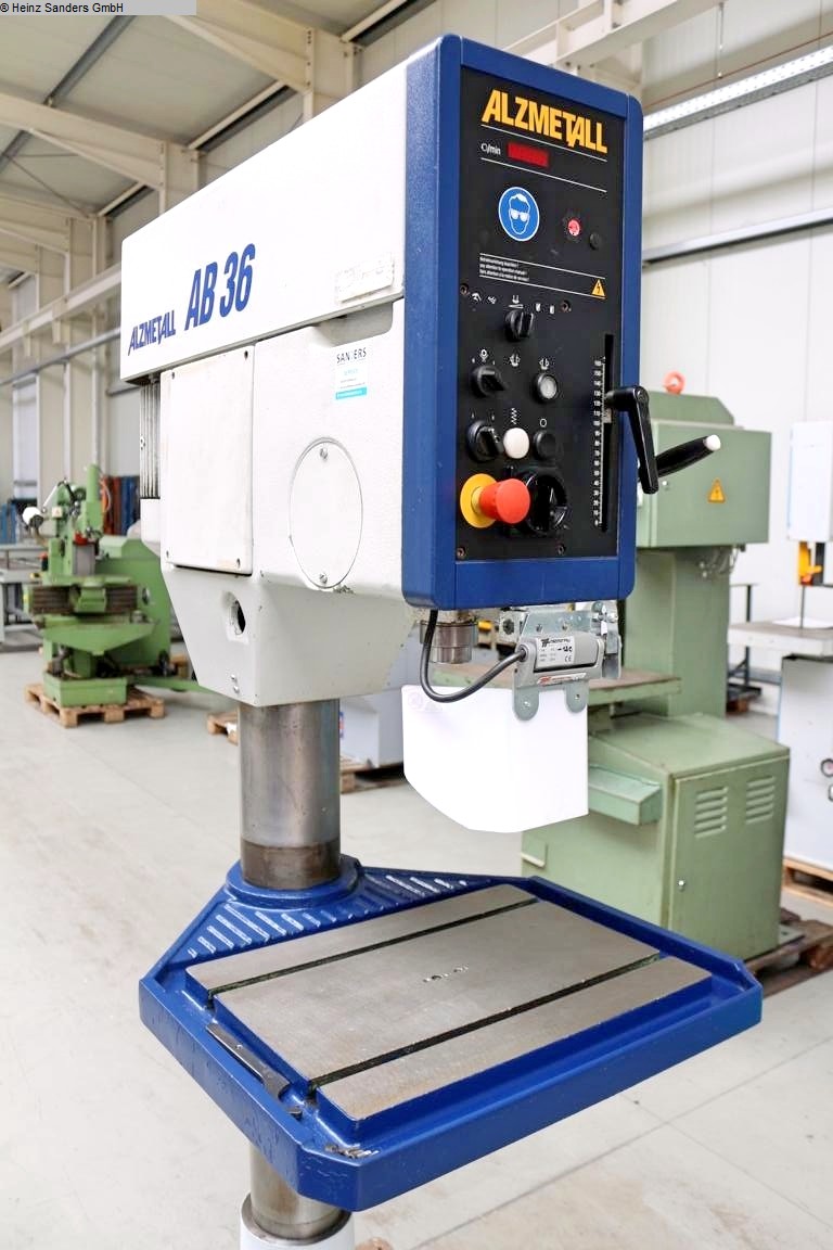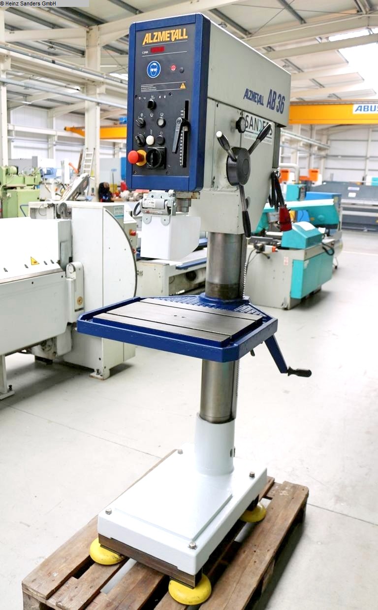 bore capacity in steel (diameter): 36.0 mmbore capacity in cast iron: 45.0 mmthroat: 300 mmbore stroke: 160 mm: 4 speeds: 120-900 / 240 - 1780 U/mincolumn diameter: 145 mmtable-size: 615 x 460 mmfeed: 0.1 / 0.2 / 0.3 / 0.4 mm/Utotal power requirement: 1.75 / 2.5 kWweight: 440 kgdimensions: 1200 x 800 x 2300 mm well-maintained condition () current new price approx. 18.000 Euro special price on requestEquipment:- robust pillar drill (V-belt)- electromagnetic feed clutch = spindle feed with overload protection and electrical handle cross circuit- mushroom pushbutton (latching) for EMERGENCY STOP, in the front panel- electric stepless speed adjustment- Digital speed display- clockwise rotation of the drill spindle- pole-changing drive motor- Infinitely adjustable drilling depth stop- Work table with 2x T-slots - height-adjustable- Operating instructions in GermanThe data for this ad was crea ...