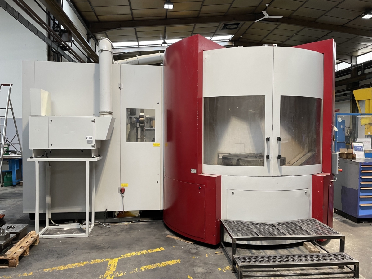 x-travel: 1450 mmy-travel: 1100 mmz-travel: 1300 mmcontrol: Siemens 840D PL Main spindle:: power capacity - main spindel: 50 kWmax. Torque: 1.500 Nmturning speed range - main spindle: 20 - 6.000 min/-1spindle diameter: 110 mmtool taper: HSK A 100 Tool-Presetter:: Turmmagazin / Tool Tower: 180 pos.change-time chip to chip: 5,5 secfeed range: 1 - 65000 mm/minrapid traverse ( X / Y / Z ): 65 m/minpallet changer:: size of pallet: 1.000 x 800 mmmax. palett load: 2000 kgmax. workpiece height: 1.700 mmNumber of pallettes: 2 pos.dimension of workpiece: 1400 x 1400 mmtotal power requirement: - kWweight of the machine ca.: 25 tdimensions of the machine ca.: 8100 x 5350 x 4150 m- Siemens 840D Powerline CNC control- 2-position pallet changer- 180-position tool changer (HSK A 100)- Milling head with 180° B-axis (0.001°)- C-axis table (0.001°)- 80 bar coolant system with filter- Spindle cooling- ...