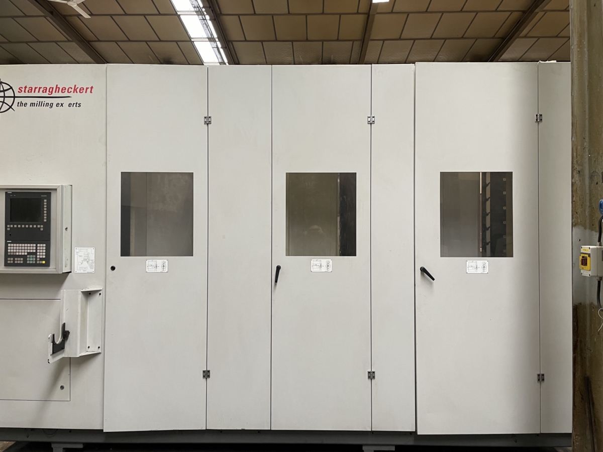 spindle diameter:150 mmx-travel:10000 mmy-travel:2500 mmbore spindle stroke:700 mmram stroke:700 dimension of the ram:340 x 340 mmspindle taper ISO:50 Speed of boring spindles:1,25 - 1250 U/min.feed speeds infinitely variable:1 - 5000 mm/minrapid traverse:5 m/mintotal power requirement:120 kWweight of the machine ca.:115 tdimensions of the machine ca.:15,1 x 10 x 6,4 mwith CNC SIEMENS 840 Dsl complete retrofit in 2010FIBRO CNC rotary table 2500 x 2500 mm, 50 to. loading capacity,longitudinal movement 2500 mm,angular milling head 4 x 90°universal milling headfloor plate area ca. 12000 x 6000 mm ( 72 m²)chip conveyor and coolant attachmentaerostatic guideways