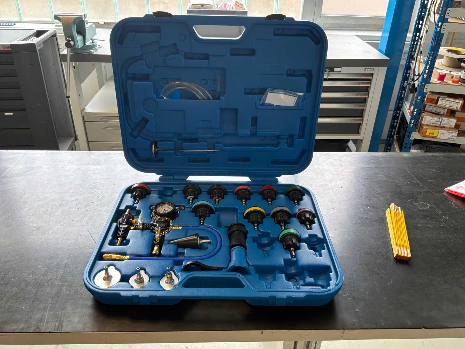 consisting of: a.o. Fixtures Base plates Mounting plates Cylinder Holder Pneumatic cylinders Directional Control Valves AND/OR valves Fast Fan Vents Distributor T-Pieces Contra-angle handpieces Push-in connections Hose connections Hose holder Pneumatic hose FESTO Didactic Power Supply FESTO Pneumatic Modules Small parts and fasteners Auction-ID: A1-45239-2108