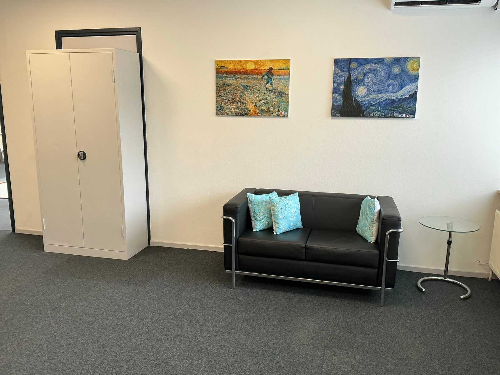 Consisting of 1x conference table (220x110cm) with 4 stackable chairs, 1x leather look 2|seater sofa, 1x filing cabinet, 1x whiteboard, 1x round side table and 4 x wall decoration, other items not mentioned not included. on the first floor, there is no elevator Auction-ID: A1-44726-82