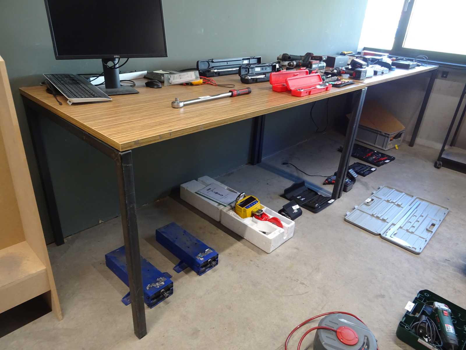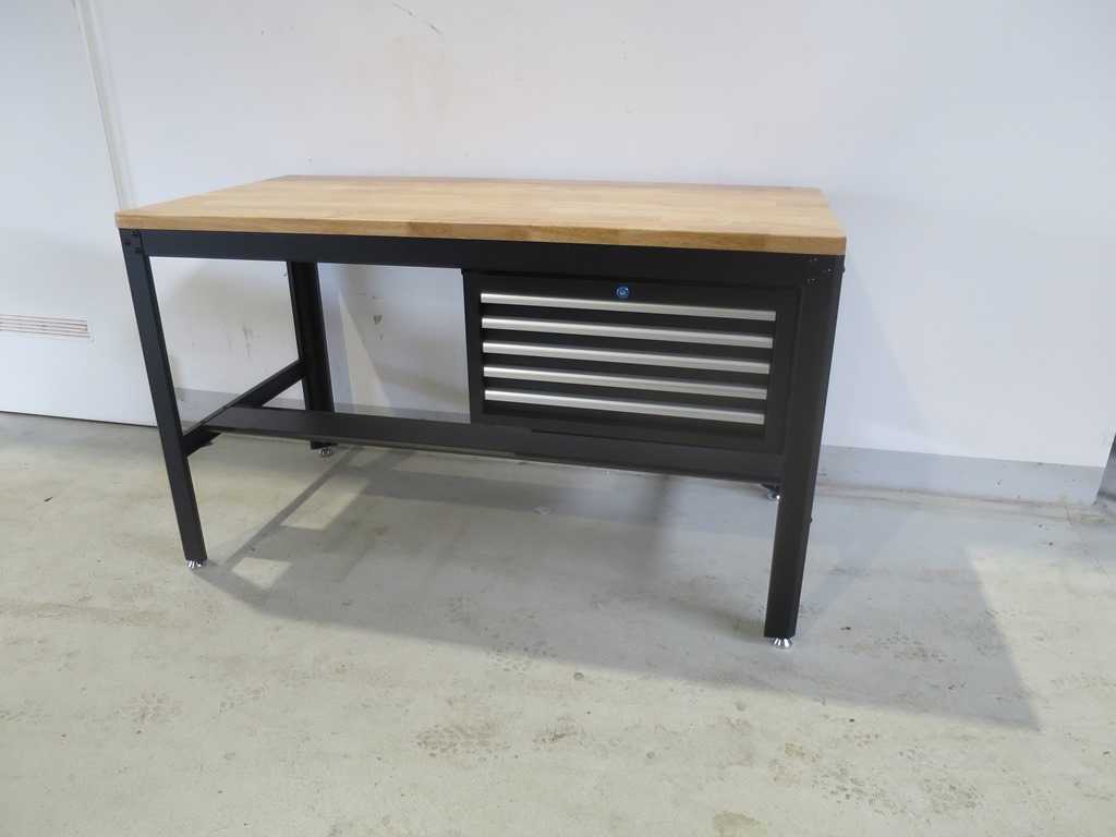 Workbench with drawer block Dimensions of the entire drawer unit 66 x 40 x 35 cm. Dimensions of each drawer 59 x 35 x 4 cm. Length 1560 mm Width 760 mm Height above floor 880 - 920 mm Weight 70 kg Condition: never used / new (5) Auction-ID: A1-45681-707