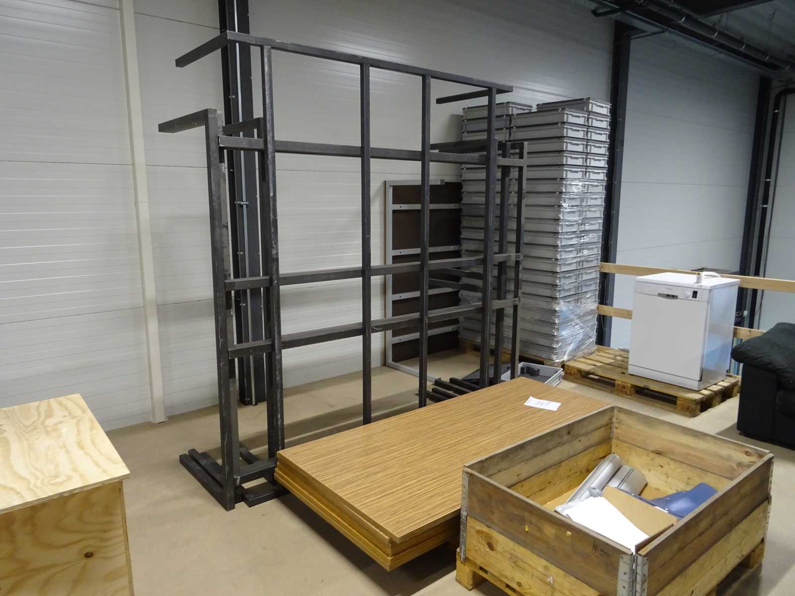 consisting of 17 loose leaves 205 and 240cm wide, 7 steel bases 240x200cm, 2x assembled desk Auction-ID: A1-45411-380