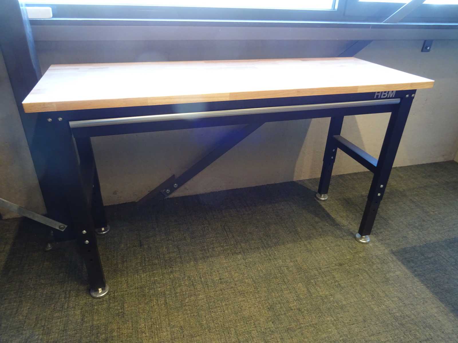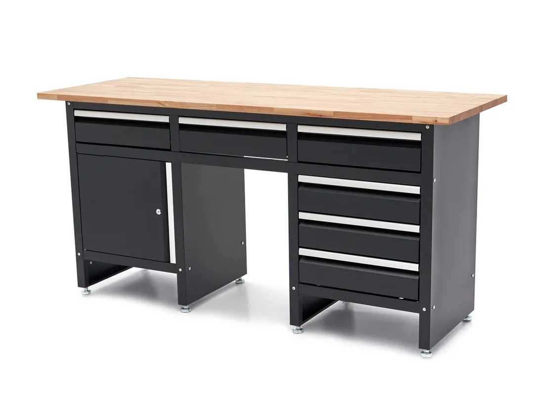 Workbench with 6 drawers and solid wood worktop Door compartment dimensions (WxDxH) 940 x 400 x 440 mm Dimensions small drawer (WxDxH) 460 x 400 x 120 mm Height adjustment max.40 mm Length 1700 mm Width 600 mm Height above floor 860 mm Table load 400 kg Dimensions L x W x H 1700 x 600 x 400 m Weight 70 kg Auction-ID: A1-45681-813