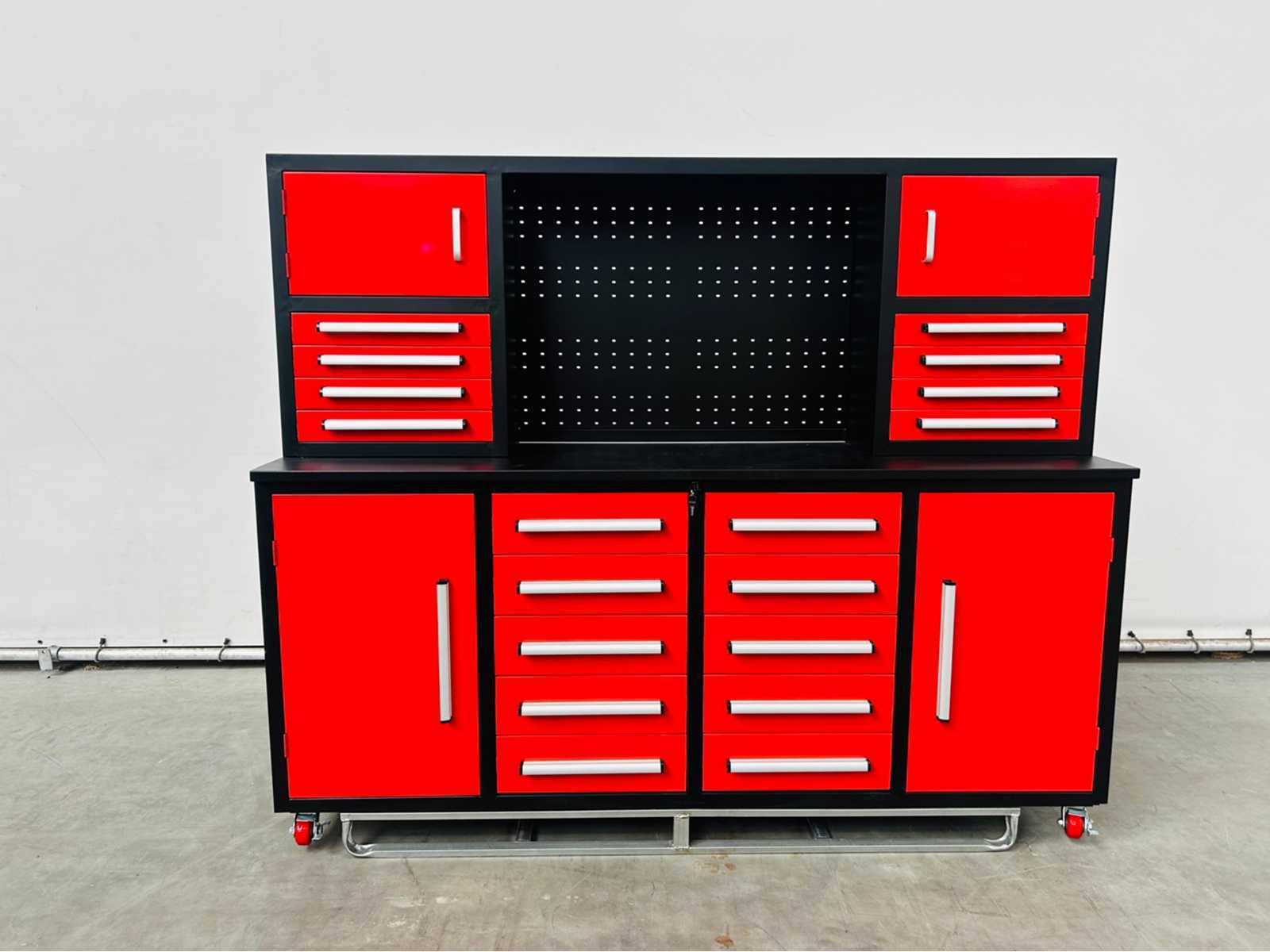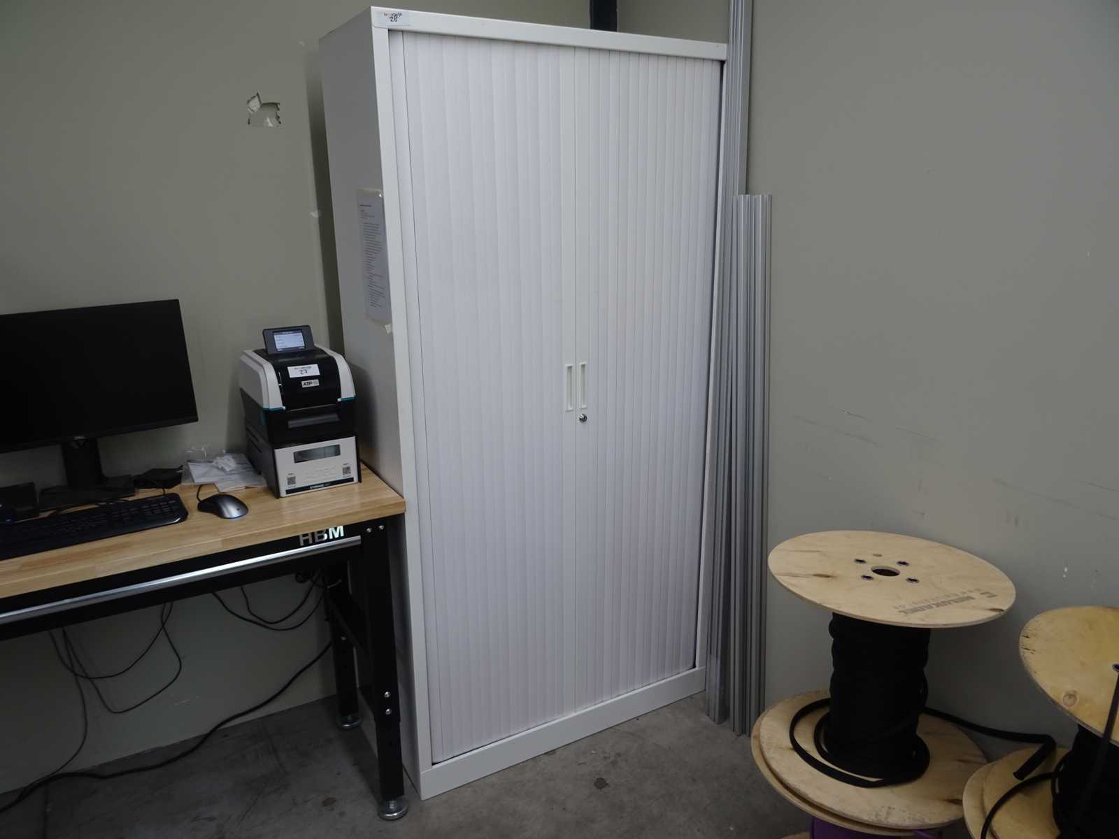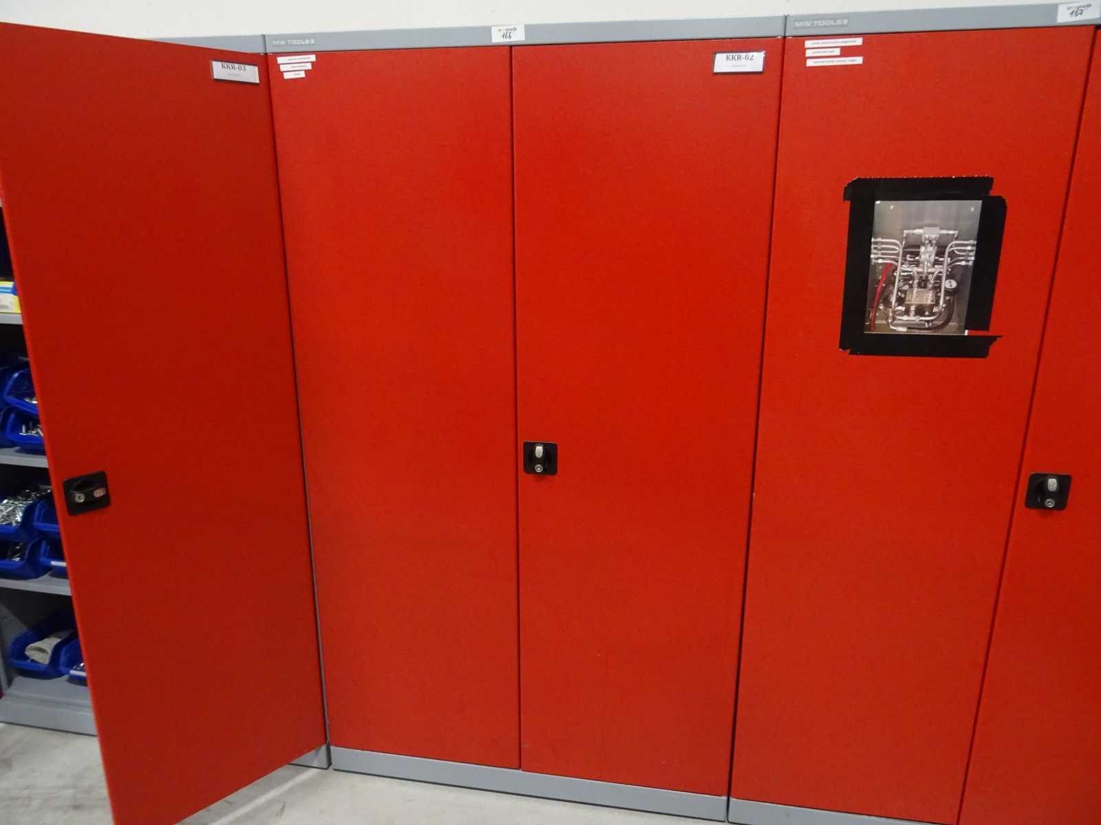 Consisting of: shelving units in various sizes, (3x) workshop cabinet various sizes, (1x) storage cabinet 109x53x218cm. Auction-ID: A1-44726-57