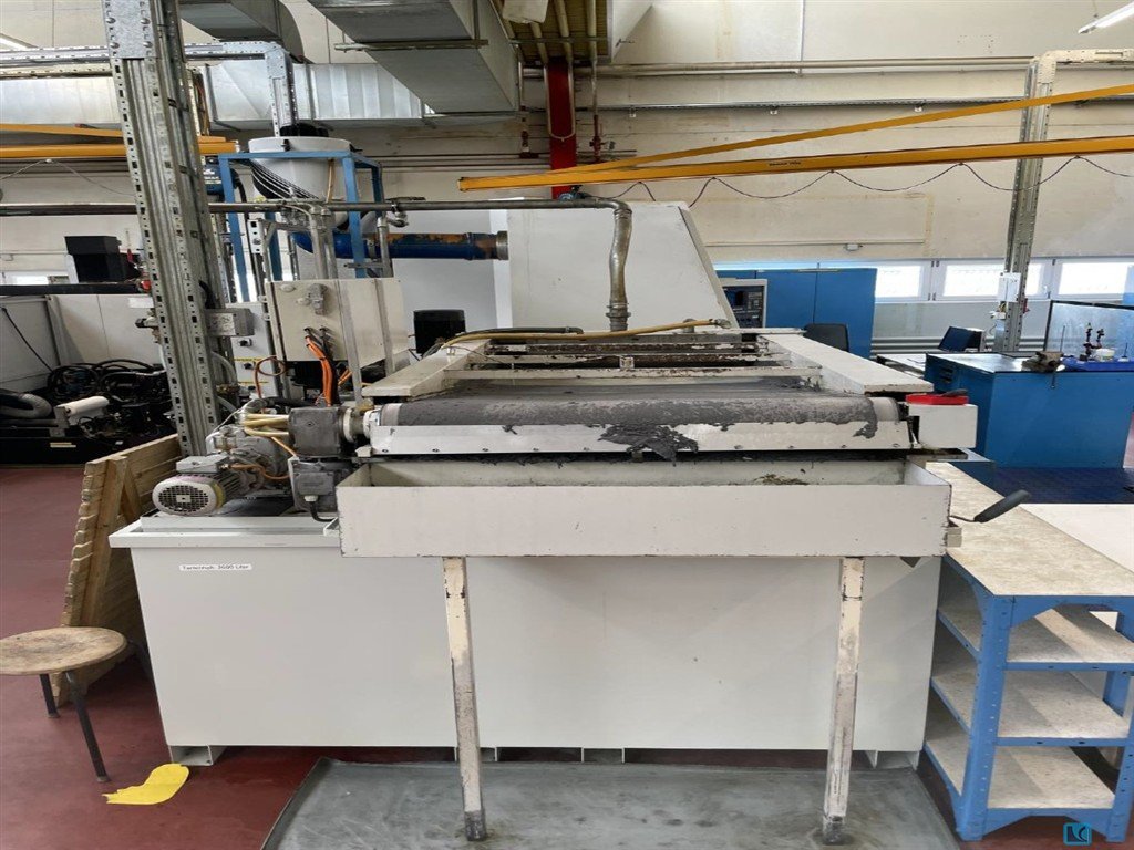 working width:880 mmworkpiece height:1- 70 mmwork height max.:1000 mmFeed speed:4- 8 m/min.voltage:50 Hz, 400 Vweight of the machine ca.:2.800 kgdimensions of the machine ca.:2500 x 1715 x1675 mmwidth:min. 350 mmSanding cylinder diameter:420 mmelectr. connected load:20 KWRequired air-pressure:1 x R3/ 8 " pressure:5 bartank:des Bandfilter ca.200 lautomatic magnetic filter unit:vorhanden grinding tools:1540 x 900 mmaccessories::9 Bänder Documents:vorhanden