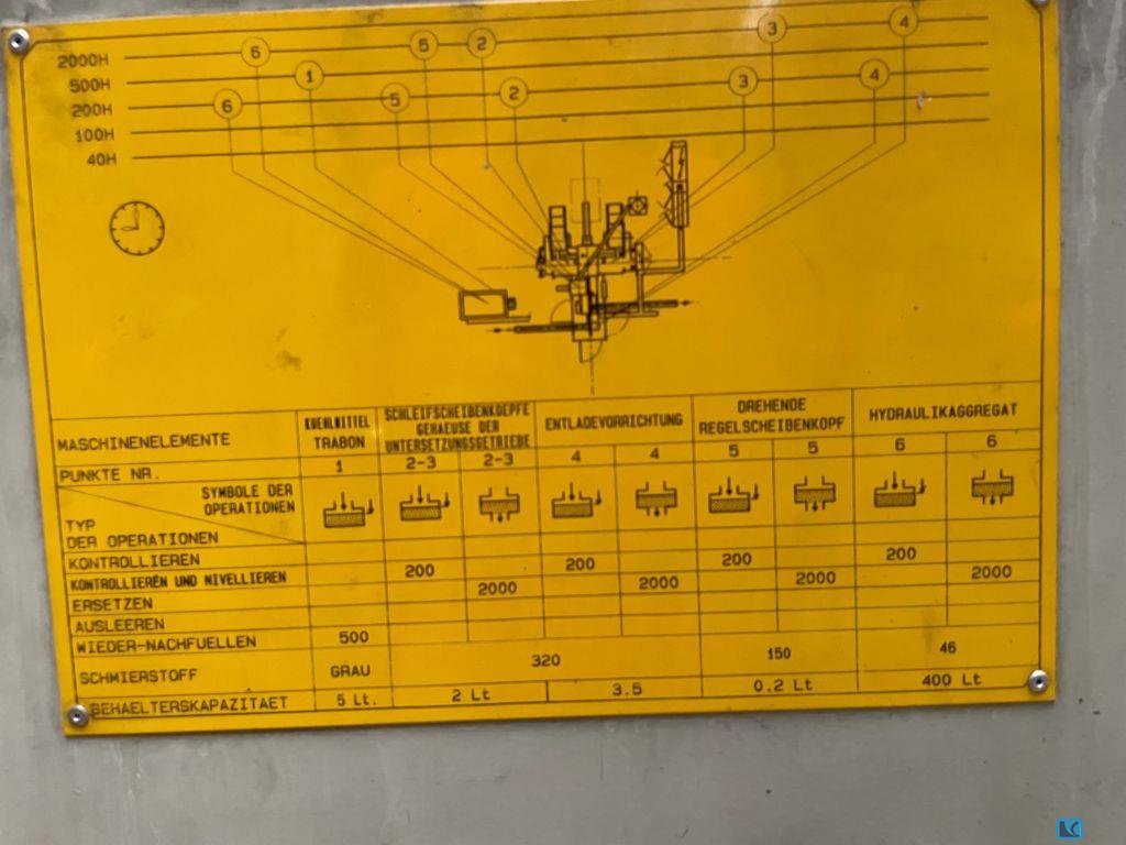 grinding length:600 mmgrinding width:250 mmworkpiece height:380 mm:Sinumerik max. dia. of grinding wheel:300 mmweight:4000 kgtotal power requirement:12,5 kWgrinding wheels:Ø 400 mmmax. width of grinding wheel:100 mmgrinding wheel hole diameter:127 mmturning speeds:470 - 12030 1/minx-axis:600 mmy-axis:300 mmz-axis:250 mmgrinding range:450 x 200 mmdistance spindle nose and table:500 mmtable load:250 kgdimensions of the machine ca.:2600 x 2100 x 2400 mmswitchgear cabinet:1300 x 800 x 2000 mmhydraulical unit::450 x 350 x 500 mmDocuments:vorhanden