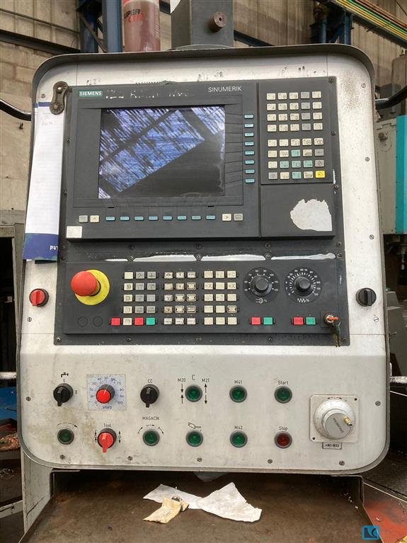 FRORIEP CNC Vertical Boring Mill Double Column REBUILT & CNC RETROFIT IN 1999 FEATURES: SIEMENS 840D CNC CONTROL 2-VERTICAL RAM HEADS CAPACITY: TABLE DIAMETER: 10,000mm TURNING DIAMETER WITH VERTICAL RAMS: 15,000mm MAXIMUM TURNING HEIGHT: 5000mm RAM VERTICAL TRAVEL: 2000mm RAM SWIVEL +/- 30/15 DEG MAXIMUM CUTTING FORCE RIGHT RAIL HD: 25t TABLE LOAD CAPACITY: 200t TABLE SPEED RANGES, INF VARIABLE: 4 TABLE SPEEDS: 0.13 TO 13 RPM CROSS RAIL ELEVATION MOTOR: 40.23 HP NUMBER OF FEEDS, VERTICAL & HORIZ: 30 CROSS RAIL ADJUSTMENT MOTOR 86 HP RAPID TRAVERSE MOTORS: 15.5 HP MAIN MOTOR: 250 HP EQUIPPED WITH: SIEMENS 840D CNC CONTROL NEW 1999 DUAL PENDANT OPERATED CONTROLS 2-VERTICAL CNC CONTROLLED RAMS 10,000mm DIAMETER T-SLOTTED TABLE 4-HEAVY DUTY FACE PLATE TYPE JAWS HYDROSTATIC BEARING SYSTEM FOR TABLE DUAL OPERATORS PLATFORMS DUAL JORGANSEN CHIP CONV ...