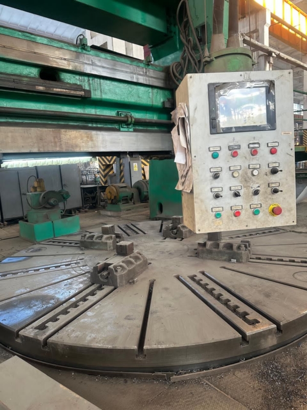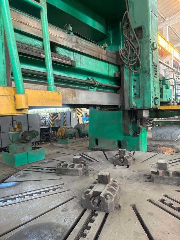 Completely retrofitted Single Column Vertical Turning Lathe Blansko model SKSJ 1A equipped with one vertical head for turning and milling operations Technical characteristics: Face plate diameter 6300 mm Max. swing with moved out arm 11200 mm Maximum height of the workpiece 4800mm Max. turning diameter with column near the faceplate 8000mm Max. diameter of work piece clamped on floor grid (for internal processing) 14700mm Infinitely variable rotation of the faceplate 0.5 – 20rpm Max. work piece weight 100ton Mi ...
