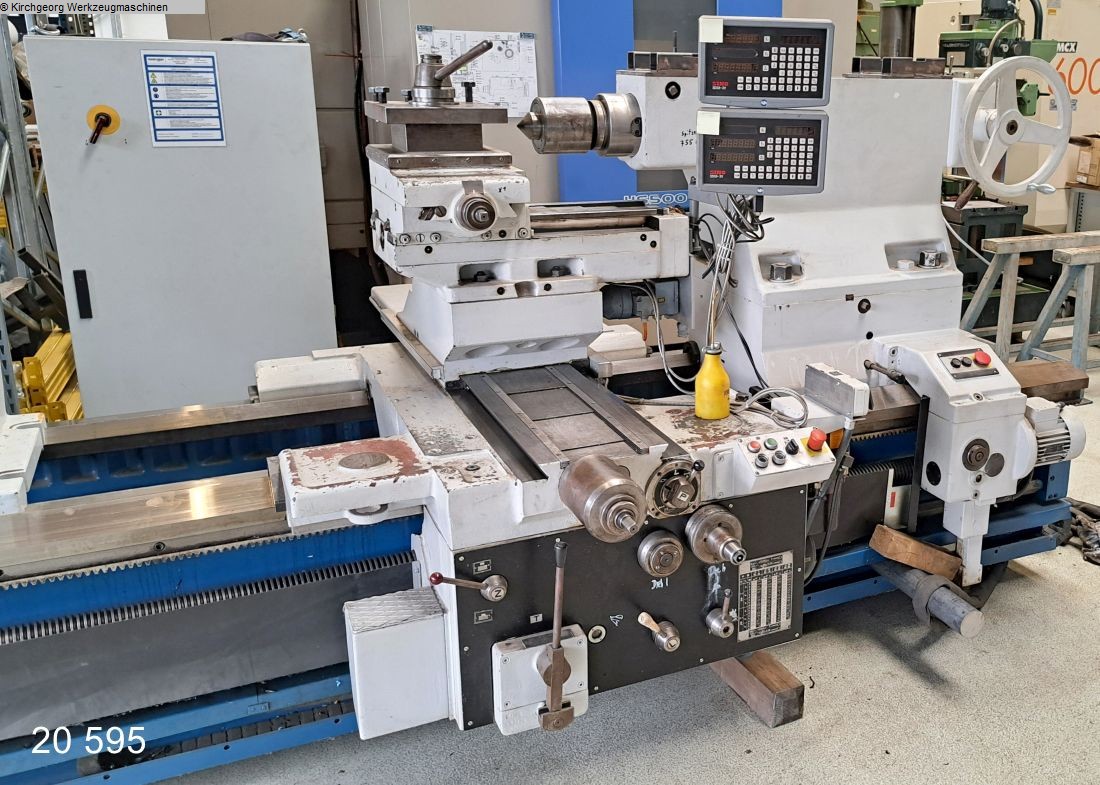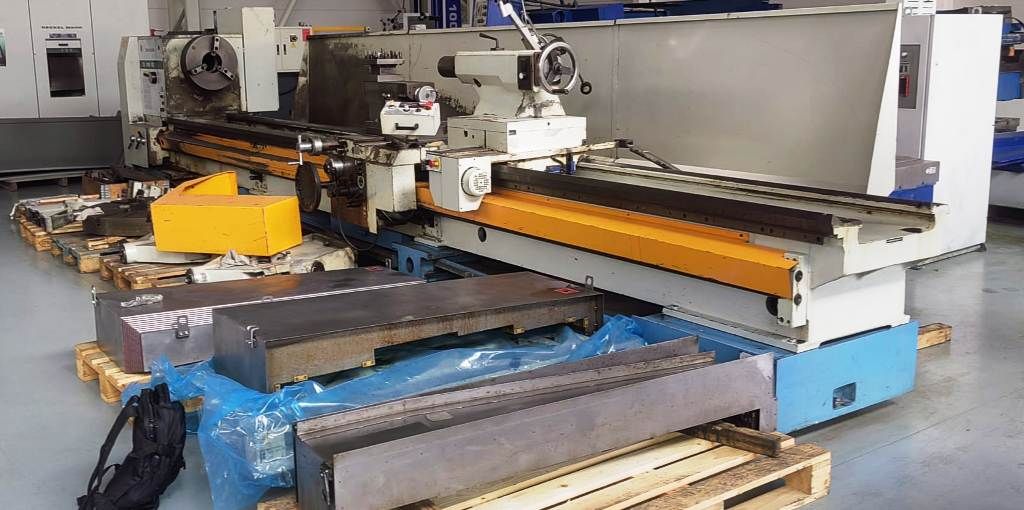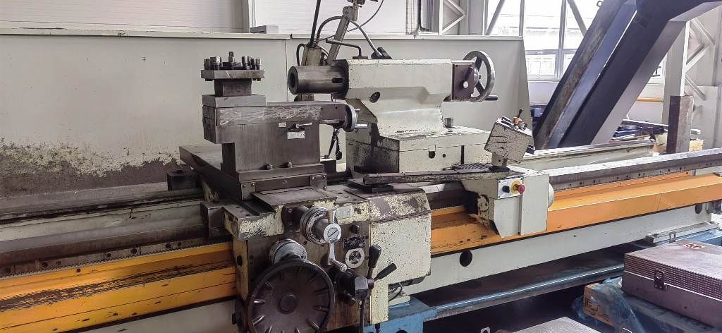 turning diameter over bed: 20 mmturning diameter over slide rest: 1200 mmturning length: 3.000 mmcentre distance: 3000 mmdigital readout: 4 - Achsen bed width: 800 mmspindle bore: 122 mmturning speed range: 1,80 - 355 U/minpower requirement: 22 kW3-jaw-chuck diameter: mmtaper in tailstock-quill: 100 (1:20) dia. of quill: 150 mmquill stroke: 350 mmcoolant: voltage: 400 Vtotal power requirement: 31 kWspindle nose: Gr. 11, DIN 55027 weight of the machine ca.: 10 tdimensions of the machine ca.: 8,20 x 2,20 x 2,20 m- Serial No.: 75.217- Rapid feed for carriage- 4-Axis DRO-System SINOThe data for this ad was created with ModulMWS - the software solution of LogoTech oHG.