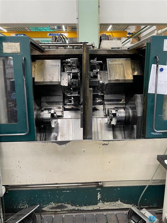 turning diameter:120 mmturning length:100 mmcontrol:Fanuc Spindle 1 power:7,5 kWSpindle 1 RPM:4500 1/minSpindle 2 power:7,5 kWSpindle 2 RPM:4500 1/minDistance between spindle noses:600 mmTurret No.1 stations / rotary tools:15/15 Power rotary tools turret 1:2,7 kWRPM of rotary tools turret 1:4000 1/minTurret No.2 stations / rotary tools:15/15 Power rotary tools turret 2:2,7 kWRPM of rotary tools turret 2:4000 1/minTravel x/z turret 1:250 / 300 mmTravel x/z turret 2:250 / 920 mmBar capacity spindle 1:51 mmBar capacity spindle 2:51 mmpower chuck:165 mm Spindle bore sp. 1:62 mmSpindle bore sp. 2:62 mmdimensions of the machine ca.:3700 x 2300 x 3000 mmweight of the machine ca.:5600 kgUsed CNC-2-spindle CNC turning and milling center with gantry loader- 2x 15 station turret-automatic gantry loader with turnaround station.14 station-magazin right sideMax. Parts size Ø 120 x 100 mmDoublegripper ...