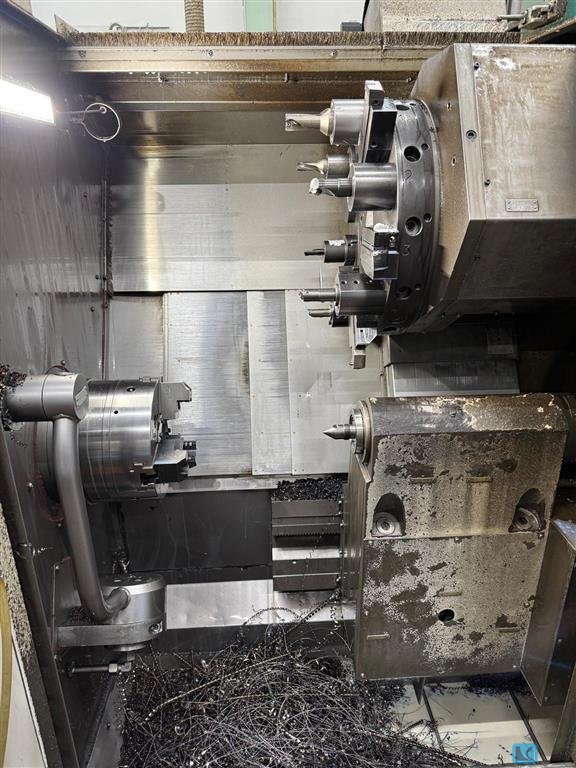 turning diameter:356 mmturning length:705 mmcontrol: CELOS M730 UM MAPPS swing dia.:742 mmstandard turning diameter:275 mmtravel -x axis:260 mmtravel -y axis:100 ( ±50) mmtravel -z axis:795 mmrapid travel - longitudinal/face:30 / 30 m/minRapid travel B-axis (parts transfer subspindle):734 m/minSpindle 1 RPM:4000 1/minSpindle 1 Power:15/18,5/18,5 kWSpindle 1 Torque:409/505 /599 NmSpindle 1 max. bar diameter:80 mmSpindle 2 RPM:4500 1/minSpindle 2 power:7,5/11 kWturret stations / rotary tool stations:20 / 20 BMT40 speed of driven tools:10000 1/min:3.7/5,5/5,5 kWtorque rotary tools:14 / 24 Nmtotal power requirement:38 kVAweight of the machine ca.:6,3 tdimensions of the machine ca.:4 (9) x 2,1 x 2,2 mParts catcher:Sp. 1 und Sp. 2 Spindle 1 Chuck:Kitagawa B 210 (250 mm) Spindle 2 Chuck:Kitagawa B 206 (160 mm) Tool presetter:Spindle 1 & 2 High precision Turning and Milling Centre with Y-axi ...