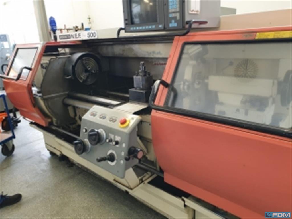 turning diameter:500 mmturning length:1000 mmcontrol:MANUAL PLUS Grundig total power requirement:24 kVAweight of the machine ca.:2650 kgdimensions of the machine ca.:2500 x 1750 x 1850 mmswing diameter over face slide:290 mmchuck:Ø max. 260 mmcross movement:260 mmspindle head:DIN 55027 Größe 8 spindle bore diameter:70 mmrapid travel - longitudinal/face:8 /6 m/minspindle speeds::8 - 2800 tailstock travel:180 mmtailstock quill taper MT:5