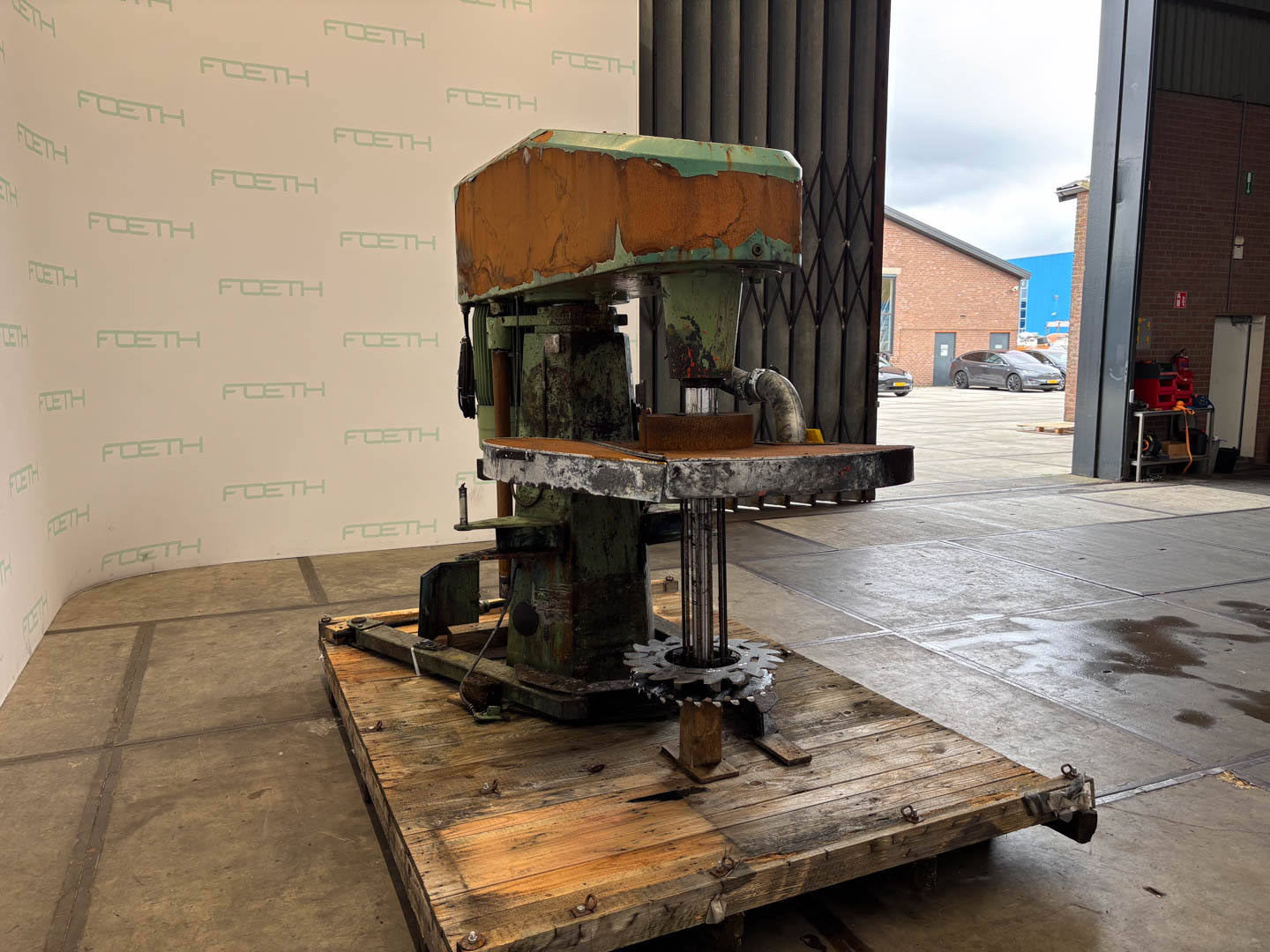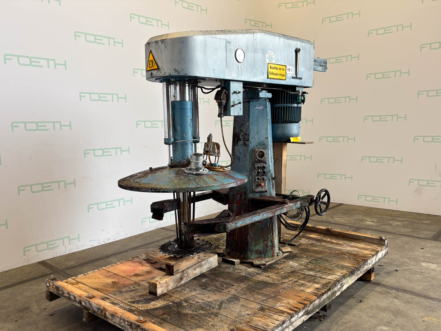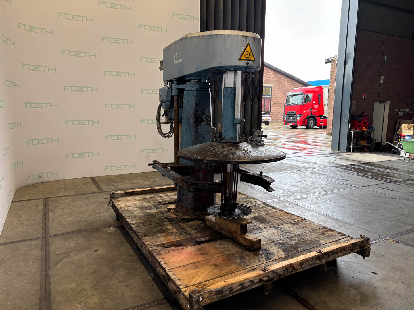 General SKU288S378 Makeunknown, manufacturer plate is missing LocationBarneveld Main Features MaterialMild steel Volume1500 Ltr. Motor37 KW Specified Features - Dissolver MaterialMild steel Dissolvercheck Shaft length1280mm Disc diameter500mm Hydraulic drivecheck With hydraulic unitcheck Motor37 kW 380/660 volt With pans(2x) stainless steel Capacity1500 ltr Pan sizesdia. 1295x1300mm (1x), dia. 1135x1400mm (1x) Outletdia. 45mm With hydraulic liftingcheck Information With switch(as is) Floorspace1,9x1,3 M Total height2,8 M Weight2400 KgDissolversCatalysts & fillersSolventsDetergent & surf.Other pharmaceuticsLubricants & oleoOther feedDyes & pigmentsMinerals & inorganicOther chemicalFine chemicalsOintmentsPaints & coatingsOils & fat-Mixers > DissolversIndustries > Chemical > Catalysts & fillersIndustries > Chemical > SolventsIndustries > Chemical > Detergent & surf ...