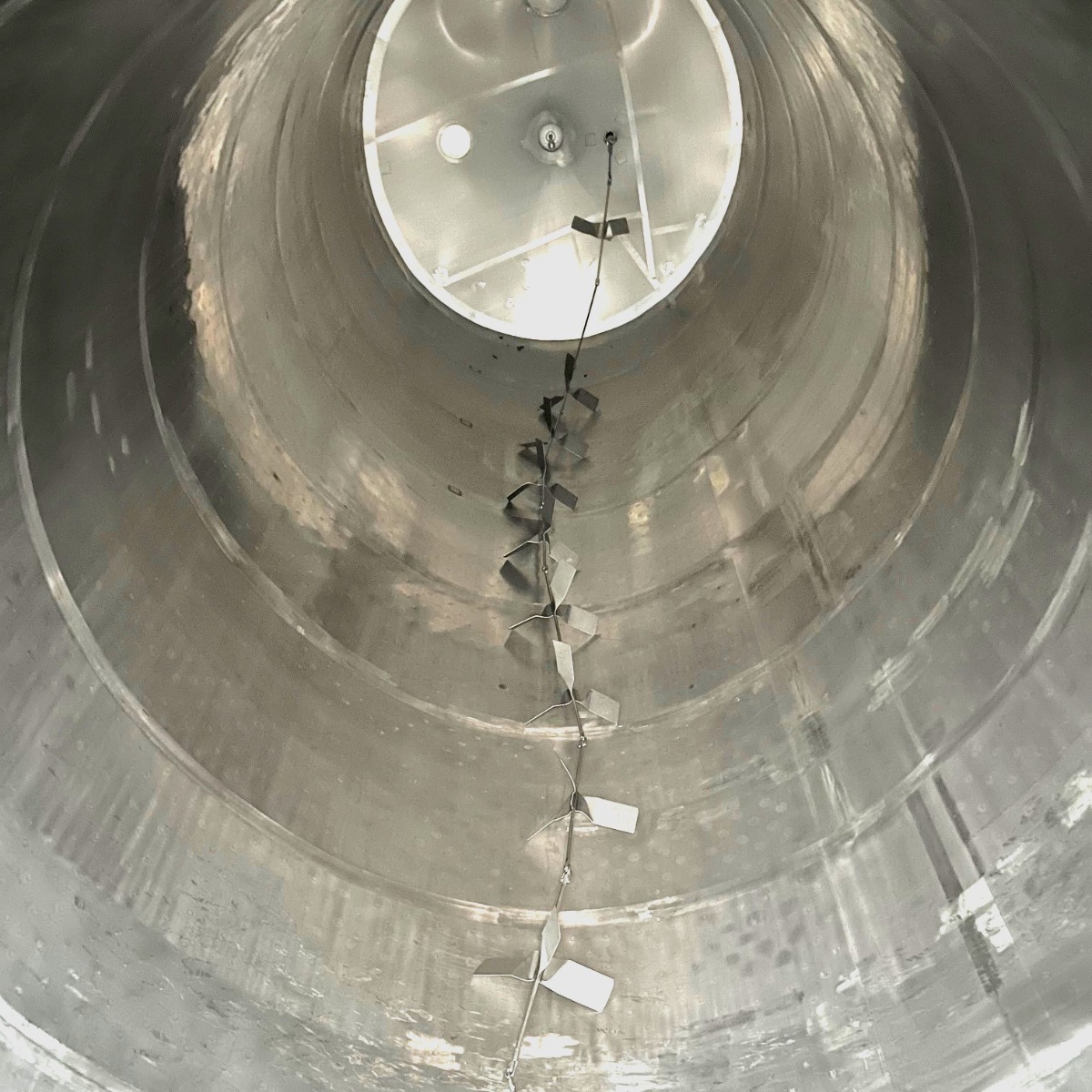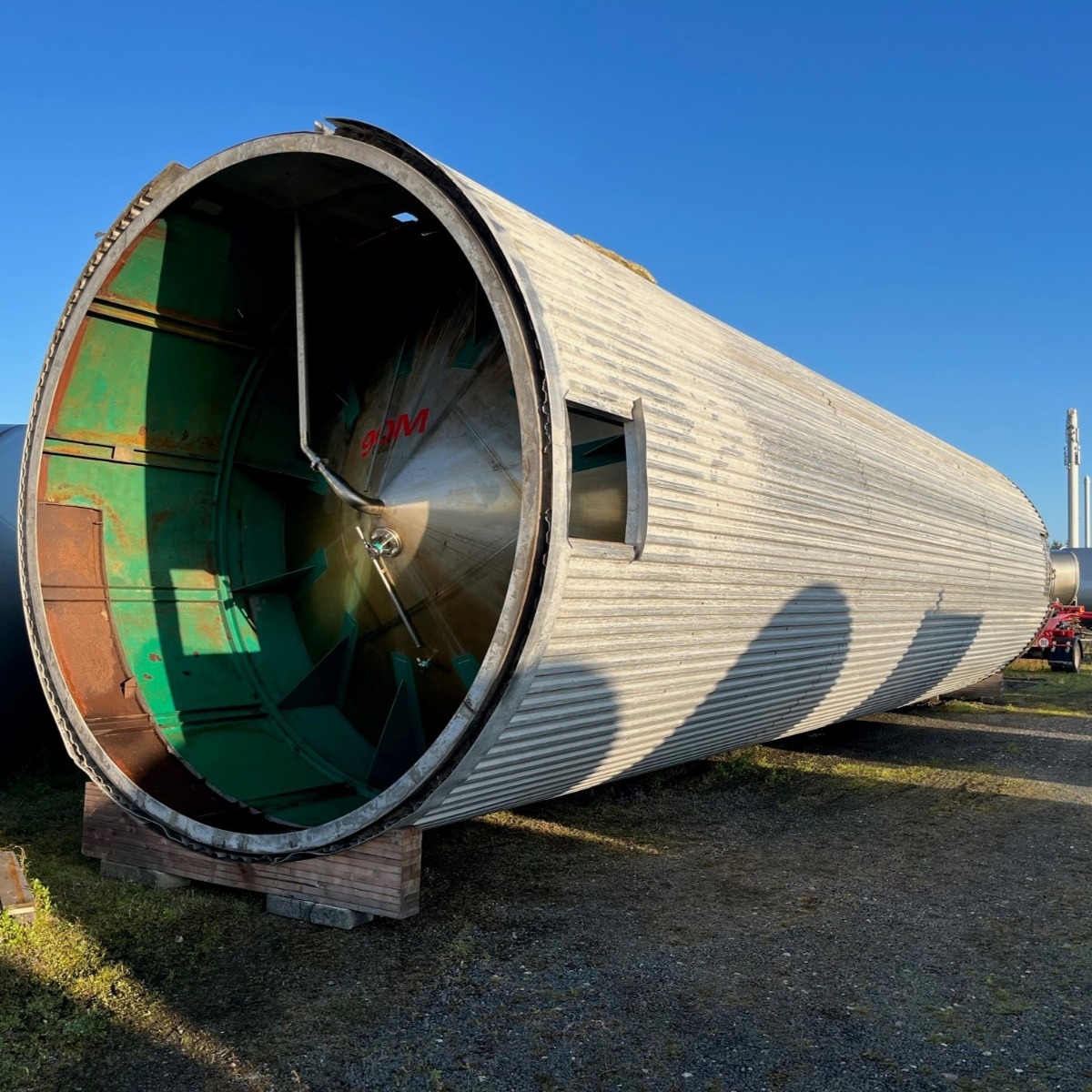 Vertical stainless steel tank, most recently part of a microbiological wastewater treatment plant., Additional title: vertical stainless steel tank, Capacity: 100000 l, Material: Stainless steel, Position: Vertical