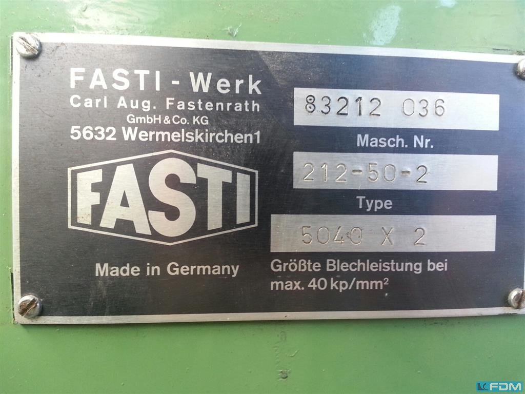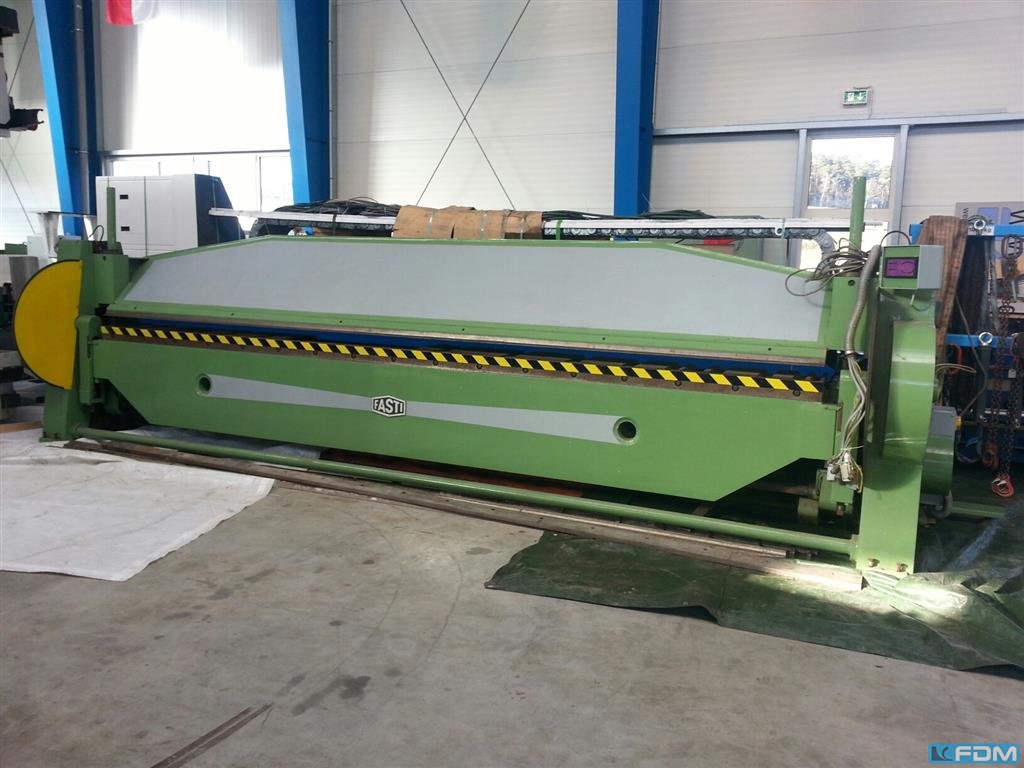 sheet width:5040 mmplate thickness:2 mmtotal power requirement:12 kWweight of the machine ca.:9,4 tdimensions of the machine ca.:6200× 1300 ×1900 mmworking width:5000 mmcontrol:Fasti Matik stroke of upper beam:500 mmadjustment of lower beam:u.Biegewange 80 mmcontrol cabinet:1000 x 850 x1450 mmDocuments:vorhanden