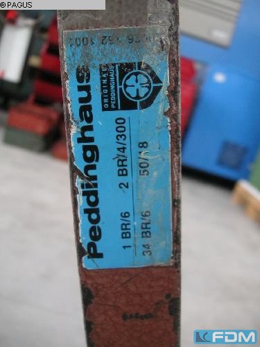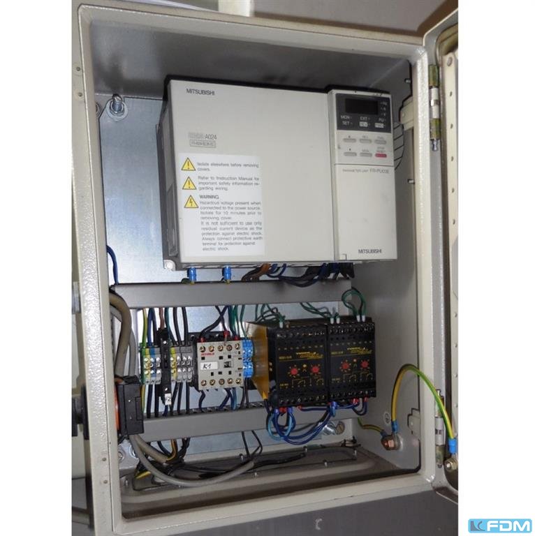 material width:500 mmmaterial thickness:0,2 - 3,8 mmfeed length:0 - 9999,9 mmnumber of rolls:2 material cross-cut:128 mm²speed:60 m/minpower requirement:2,0 kWdimensions (WxDxH):1,2 x 1,3 x 1,5 mroll feed:Servo control:Siemens S 7, modification 2002