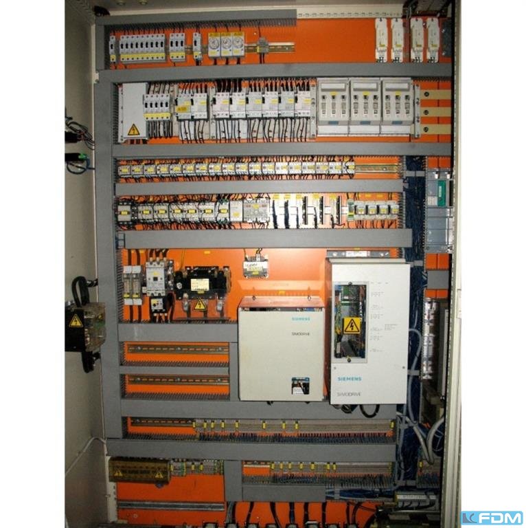 1 punching machine (14), manufacturer Kaiser, type KSTU 3500-25-6P, year of manufacture 2000, press force 350 t, stroke rate 20-100/min, stroke height 40 - 250 mm, ram adjustment 200 mm, installation height 700 mm, table size approx. 1,000 x 2,700 mm, control system, manufacturer Siemens, type Simatic Multipanel (retrofitted), force measuring unit, manufacturer Brankamp Marposs, type Prokos X1, two-hand operation, material discharge belt, downstream incline conveyor, coil unwinding reel, manufacturer Dreher, type 2380P, year of manufacture 2000, SN 0051, alignment unit, buffer section, belt feed, manufacturer Dreher, separate switch cabinet system, manufacturer Rittal, cooling unit, accessories: workbench, partition lighting, pull-out cabinet, swivel chair Find more here - / Contact us at -