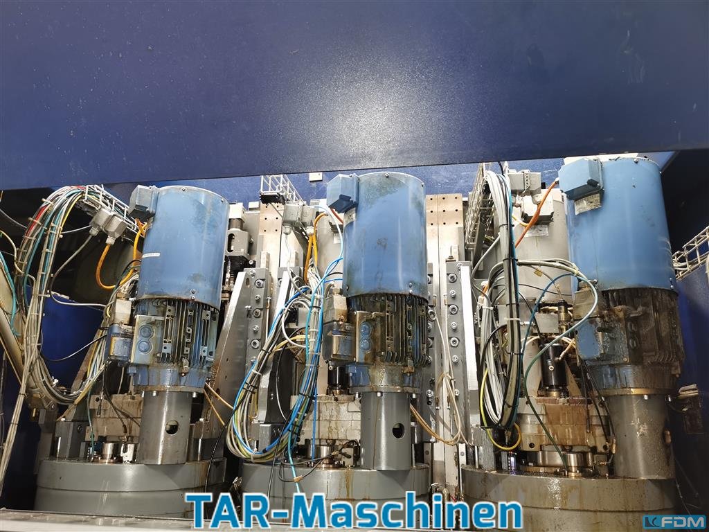 Finishing machine single-sided machining or double-sided machining, second-hand 3 FLAKKO units with 4 disc tools each: Drive power 7.5kW Spindle speed 300 - 2500 rpm Feed speed 2-20 m/min Wet machining Tool diameter 230mm Working width 400mm for single-sided machining Working width 200mm for double-sided machining with turning device Special magnetic inserts designed for hot machining IPC control with PLC Connected load 3x 400V 50Hz Connected load approx. 52 kW Overhaul of all units with conversion to new 4-point bearing between 2021 and 2023. Special-price 25.000 EURO, net -free loaded truck- Please, contact us for getting more information and pictures on mail(at)tar-mc.com or www.tar-mc.com