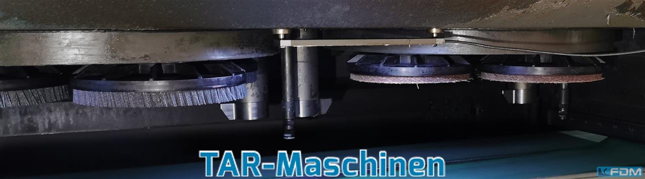 working width:880 mm workpiece height:1- 70 mm work height max.:1000 mm Feed speed:4- 8 m/min. voltage:50 Hz, 400 V weight of the machine ca.:2.800 kg dimensions of the machine ca.:2500 x 1715 x1675 mm width:min. 350 mm Sanding cylinder diameter:420 mm electr. connected load:20 KW Required air-pressure:1 x R3/ 8 " pressure:5 bar tank:des Bandfilter ca.200 l automatic magnetic filter unit:vorhanden grinding tools:1540 x 900 mm accessories::9 Bänder Documents:vorhanden